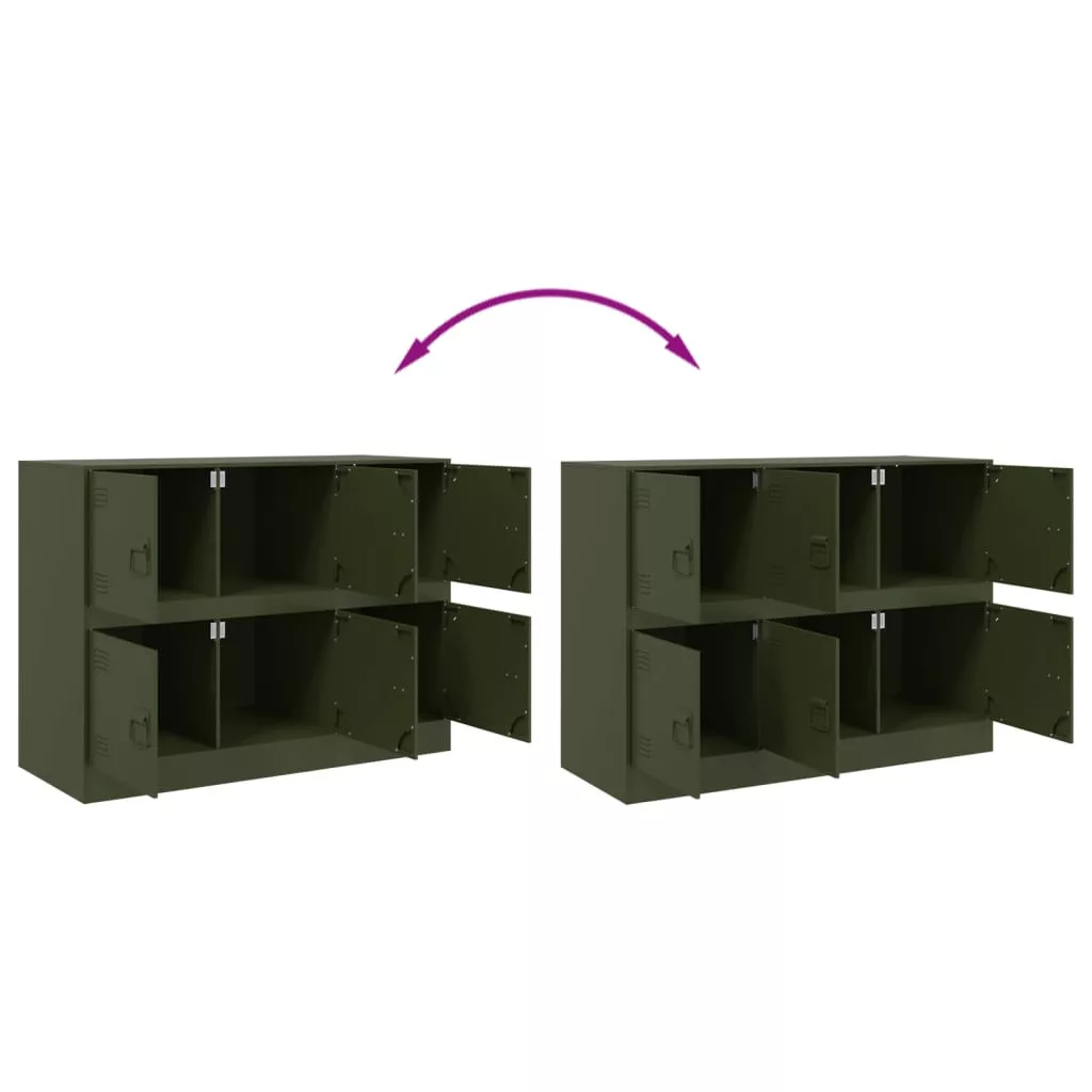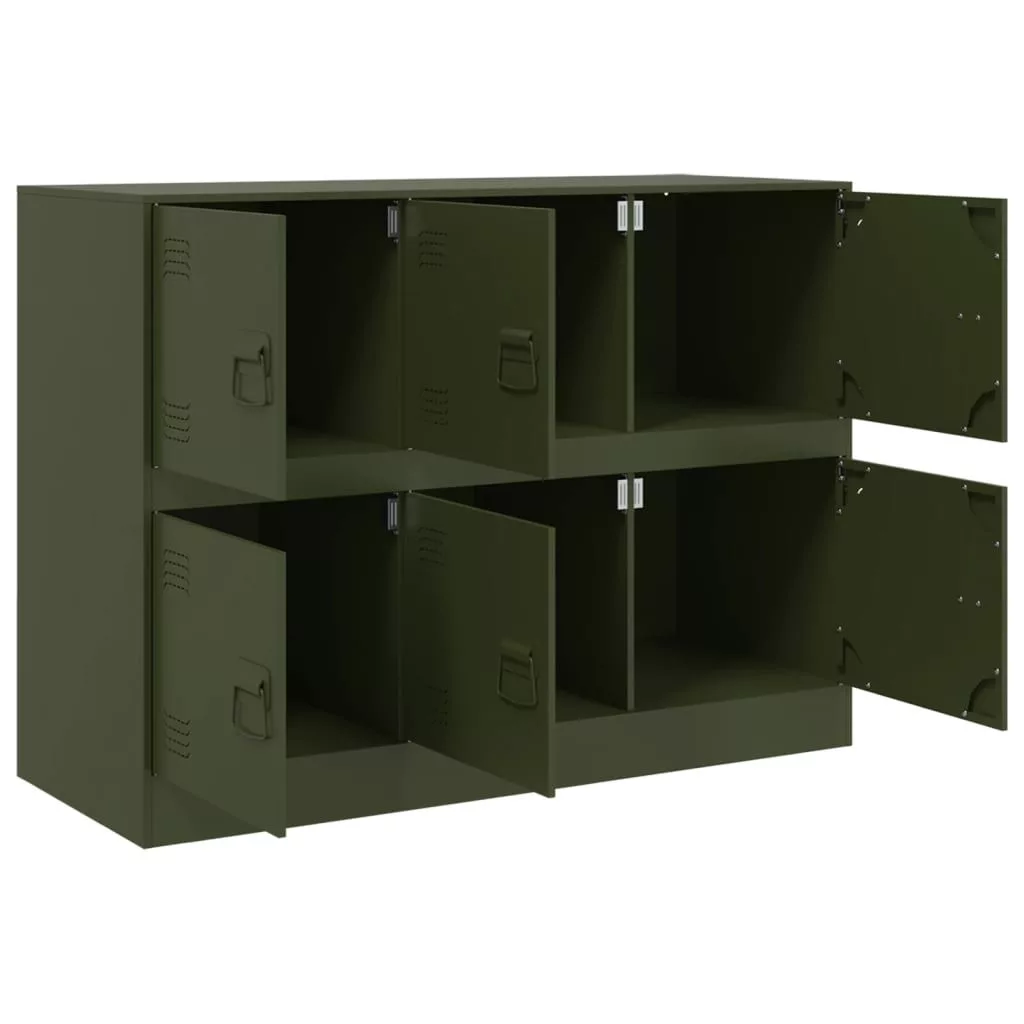 olívazöld acél tálalószekrény 99x39x73 cm