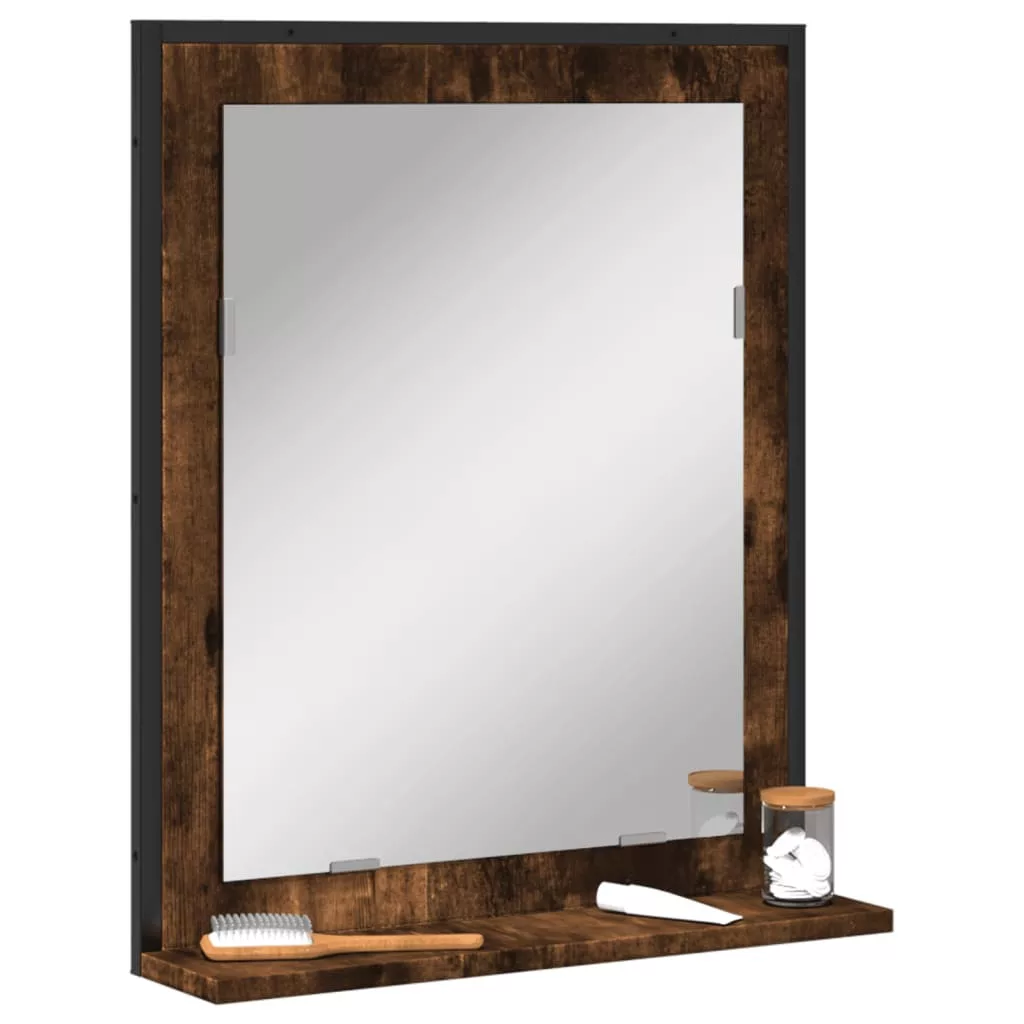 füstölt tölgy szerelt fa fürdőszobai tükör polccal 50x12x60 cm