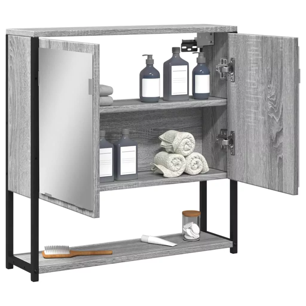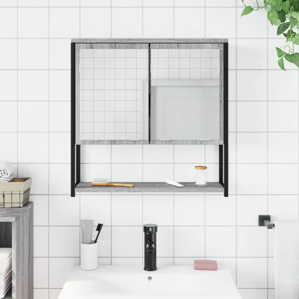 szürke sonoma színű szerelt fa tükrös szekrény 60x16x60 cm