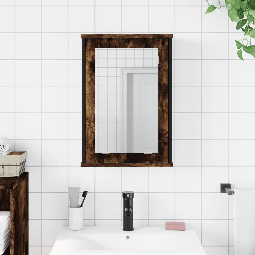 füstölt tölgy szerelt fa tükrös fürdőszobaszekrény 42x12x60 cm