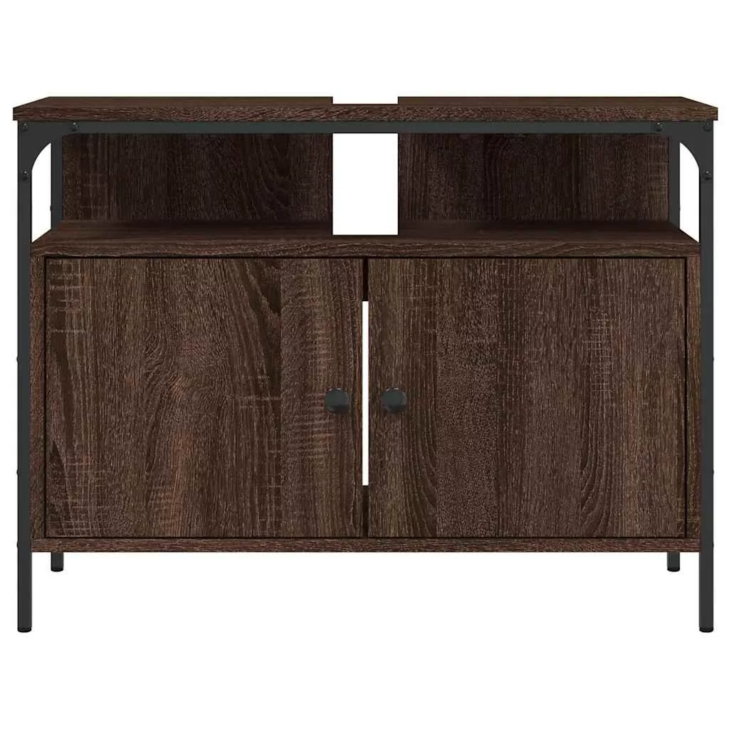 barna tölgy szerelt fa fürdőszobai mosdószekrény 80x30x60 cm