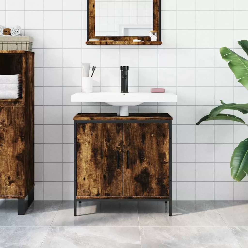 füstölt tölgy szerelt fa fürdőszobai mosdószekrény 60x30x60 cm