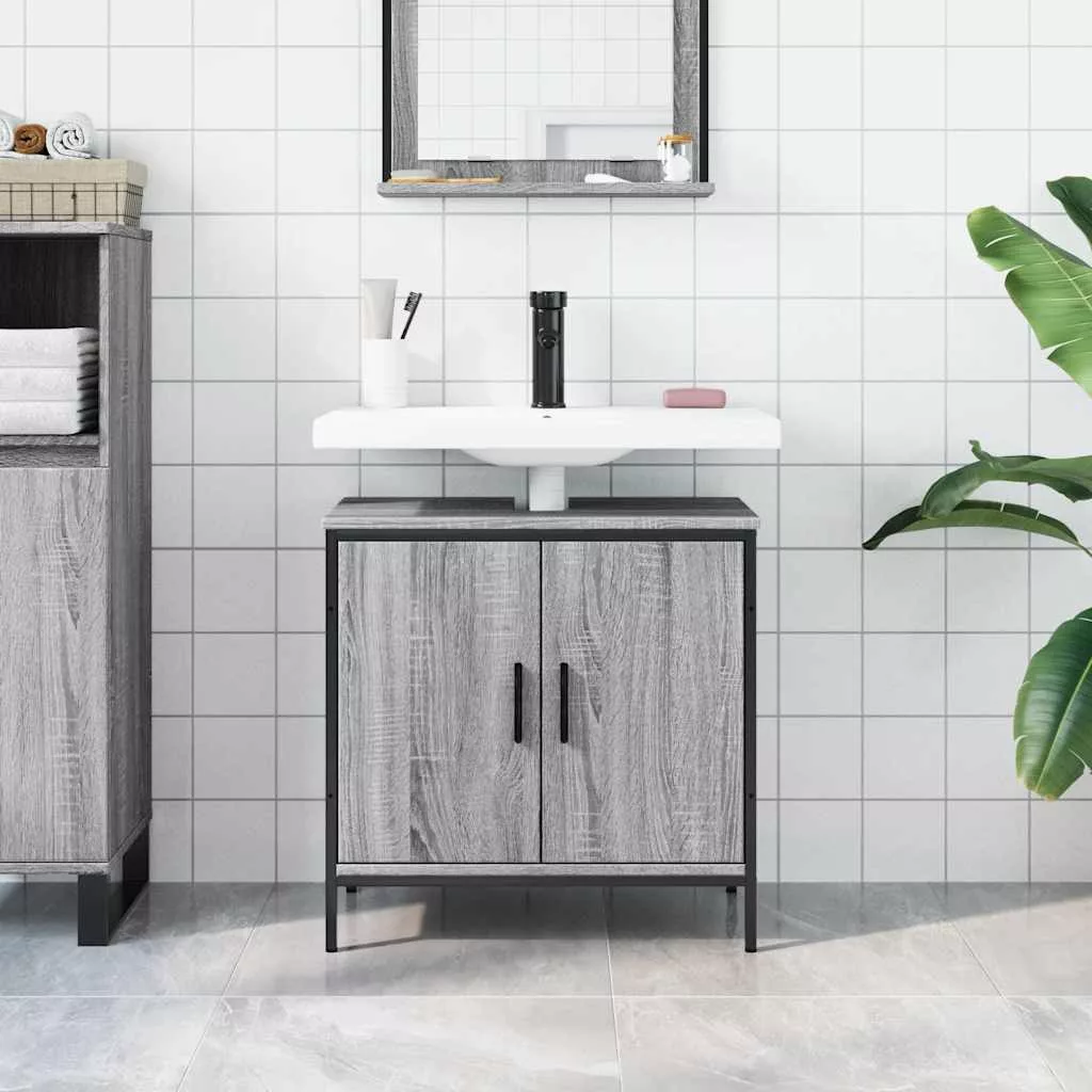 szürke sonoma szerelt fa fürdőszobai mosdószekrény 60x30x60 cm