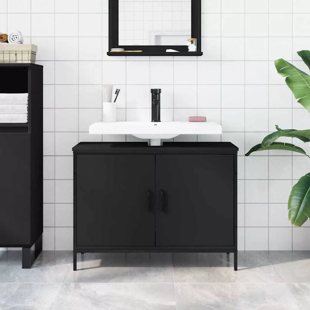 fekete szerelt fa fürdőszobai mosdószekrény 80 x 30 x 60 cm