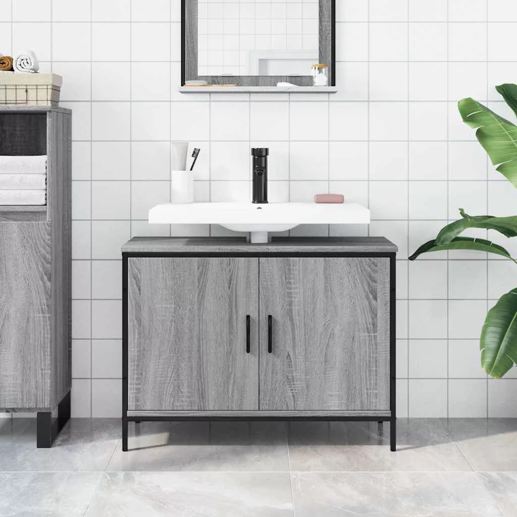 szürke sonoma szerelt fa fürdőszobai mosdószekrény 80x30x60 cm