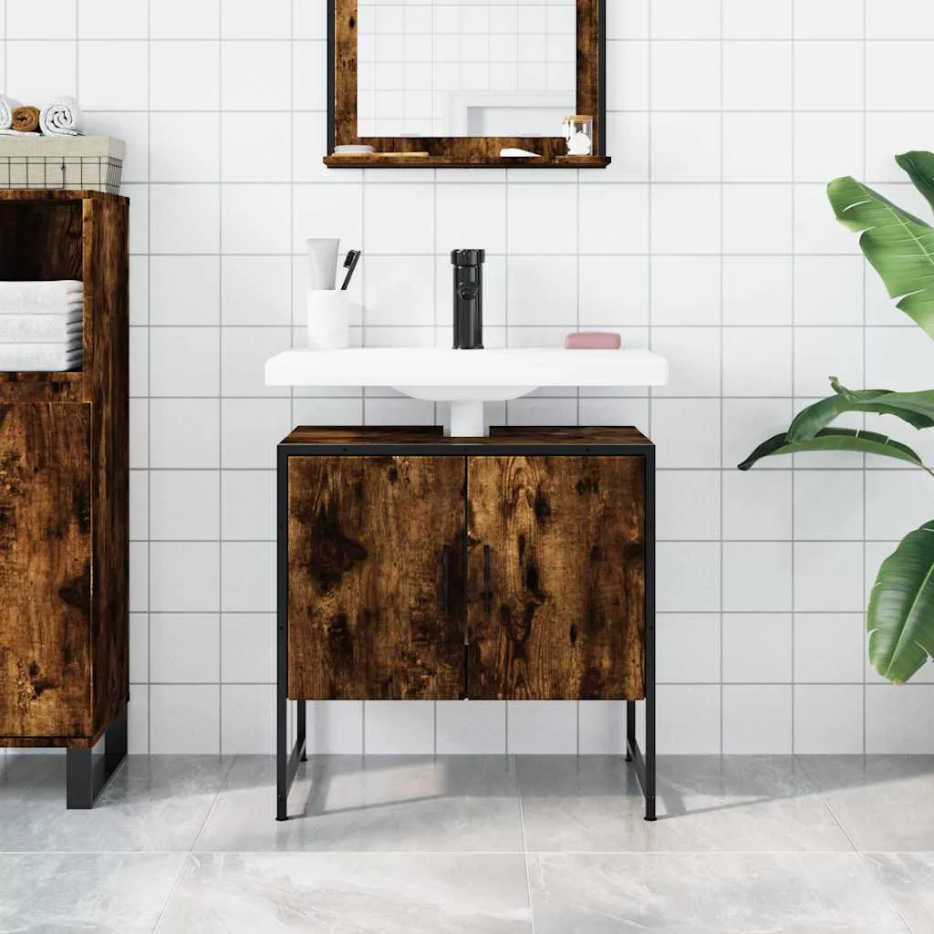 füstölt tölgy szerelt fa fürdőszobai mosdószekrény 60x33x60 cm
