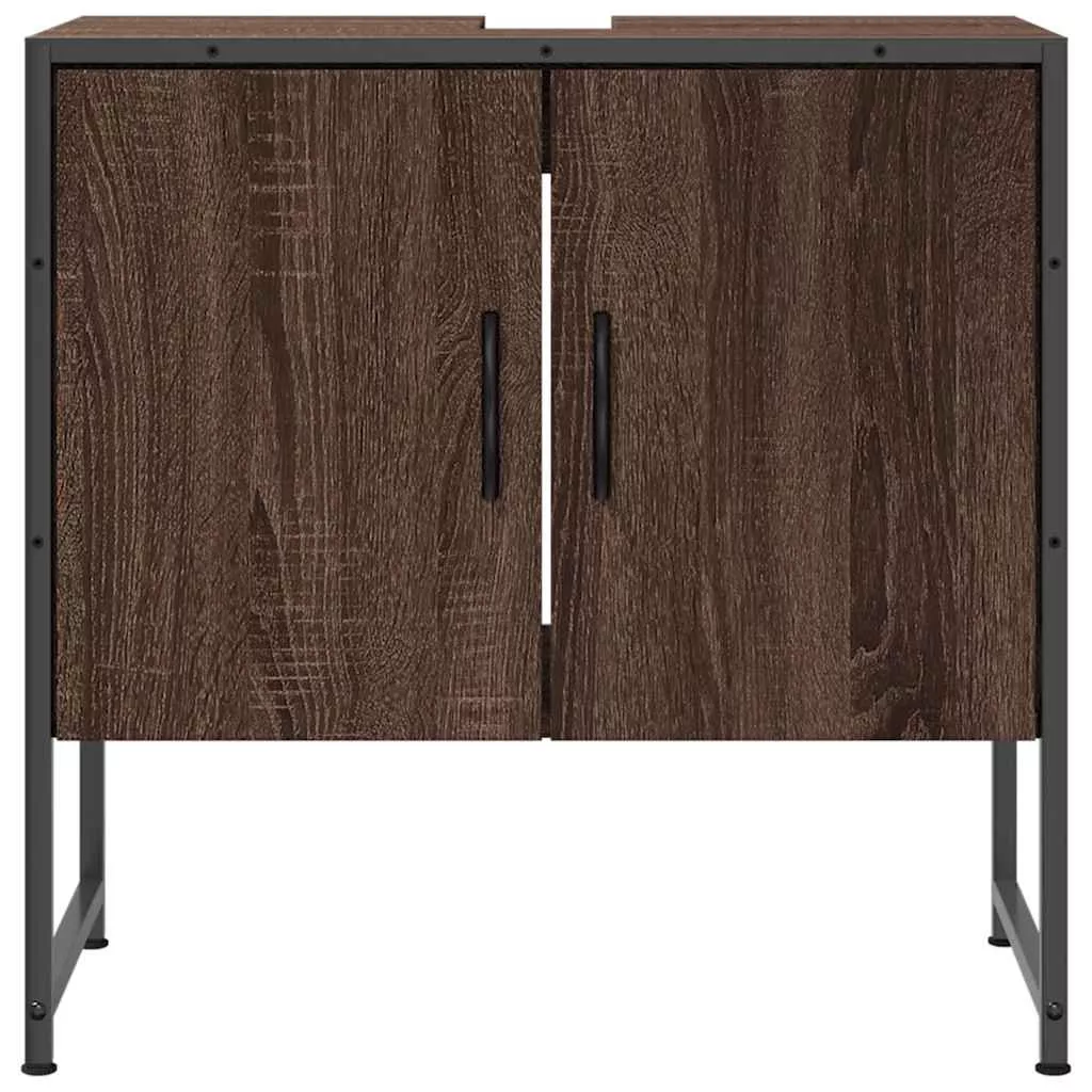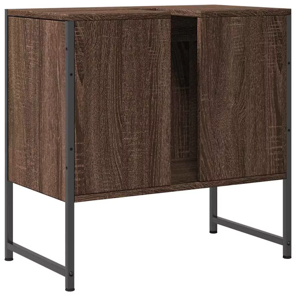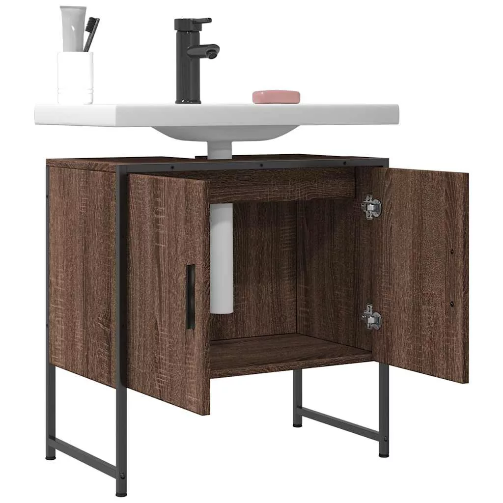 barna tölgy szerelt fa fürdőszobai mosdószekrény 60x33x60 cm