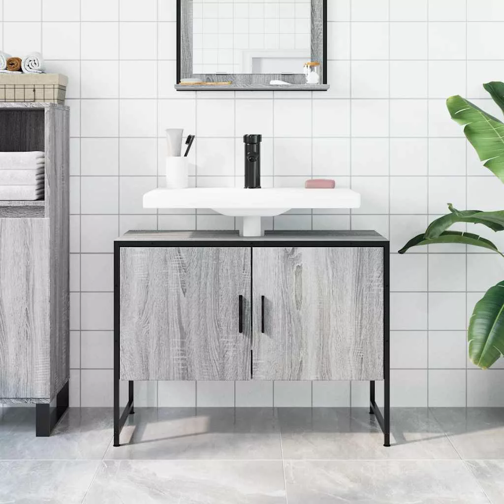 szürke sonoma szerelt fa fürdőszobai mosdószekrény 80x33x60 cm
