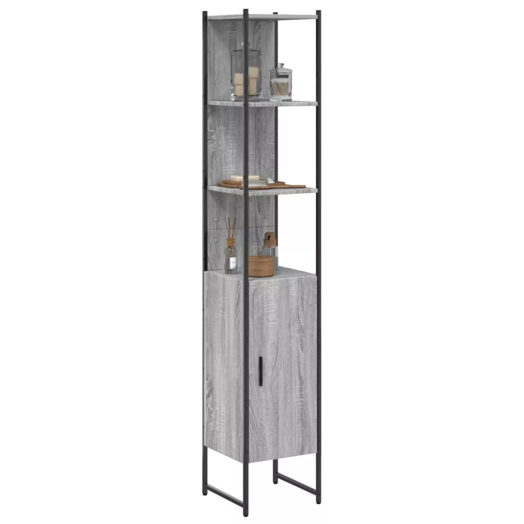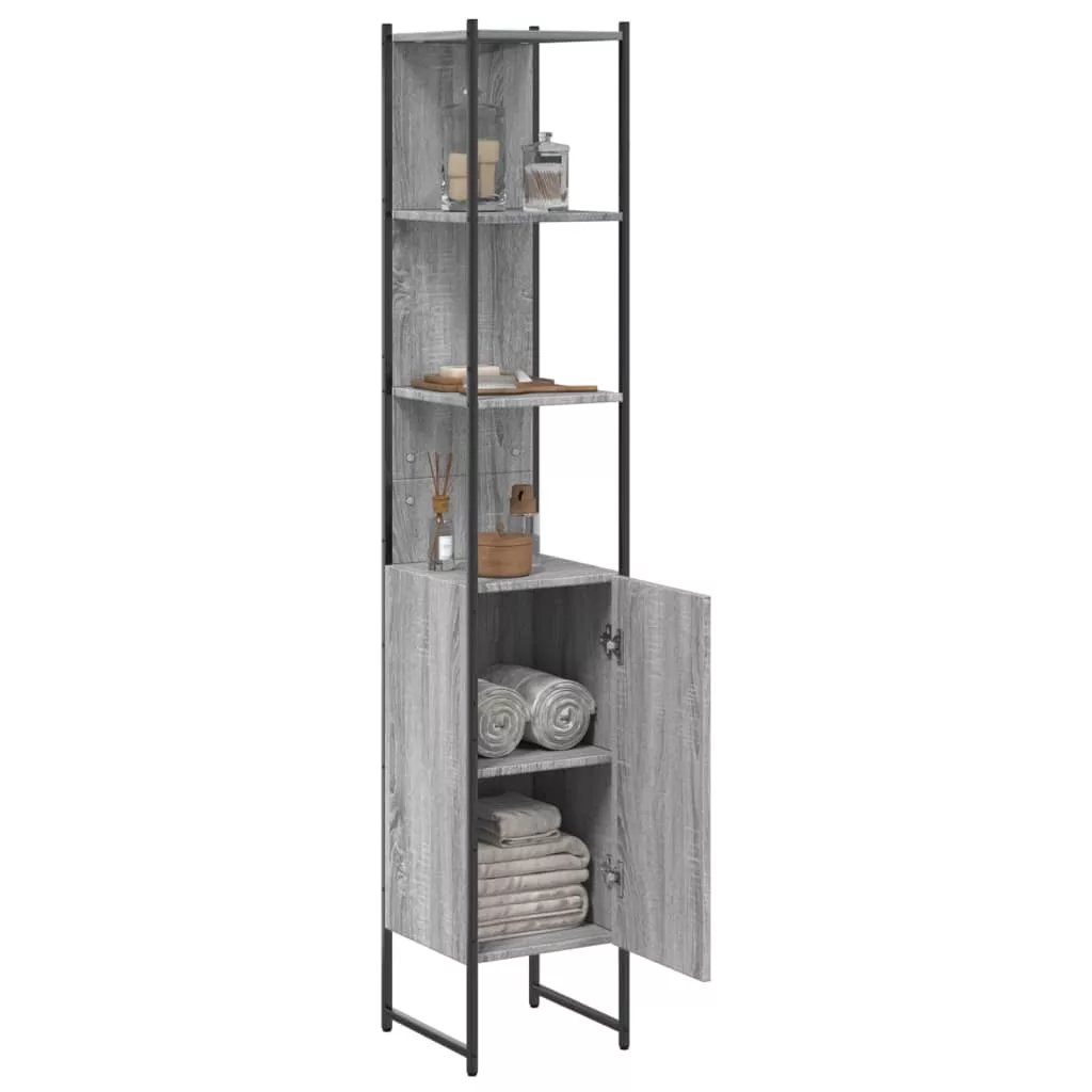 szürke sonoma színű szerelt fa fürdőszobaszekrény 33x33x185,5cm