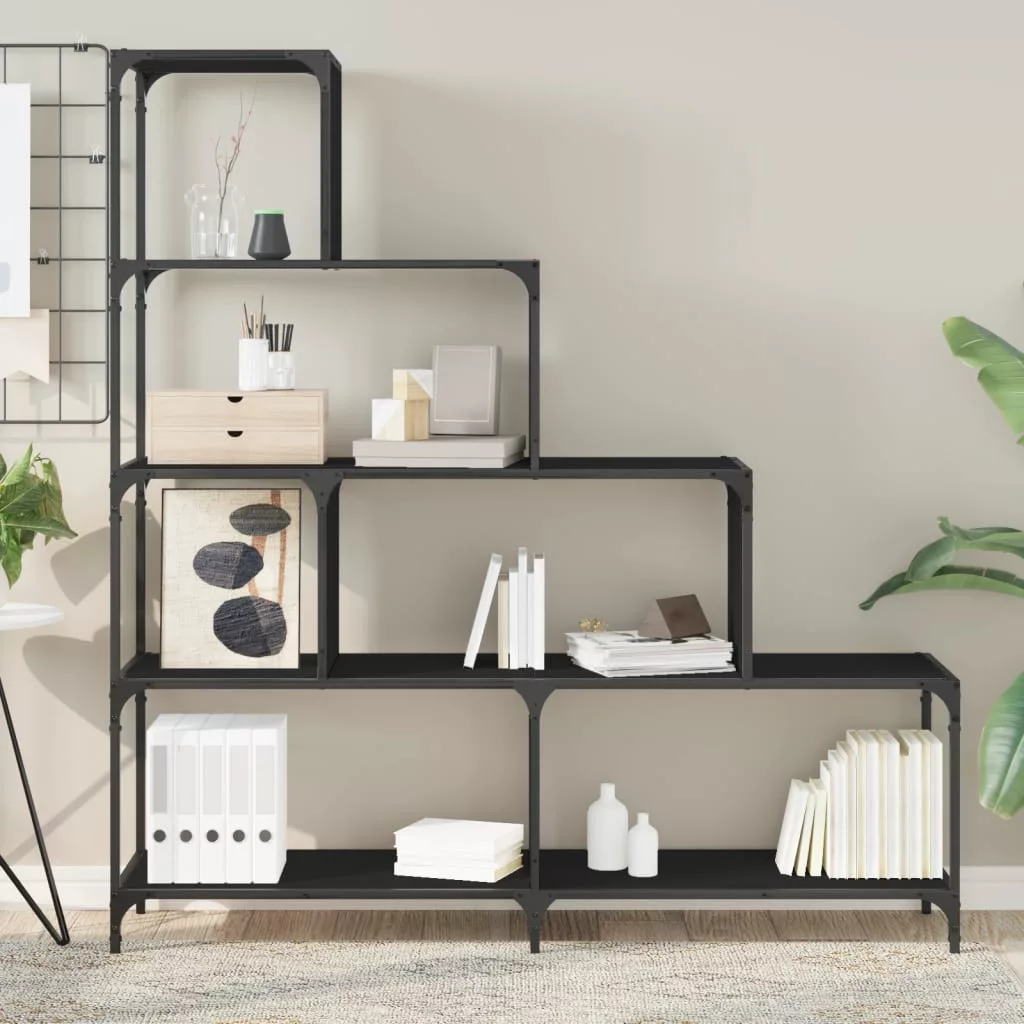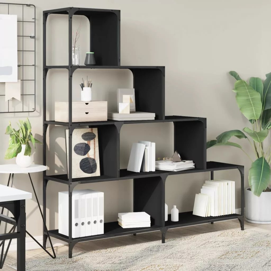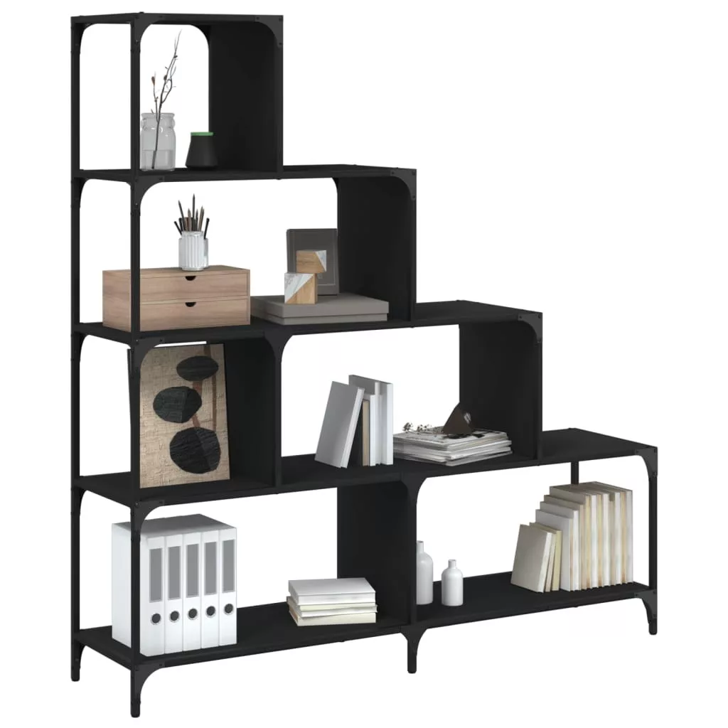 4 szintes fekete szerelt fa könyvespolc 139x33,5x149 cm