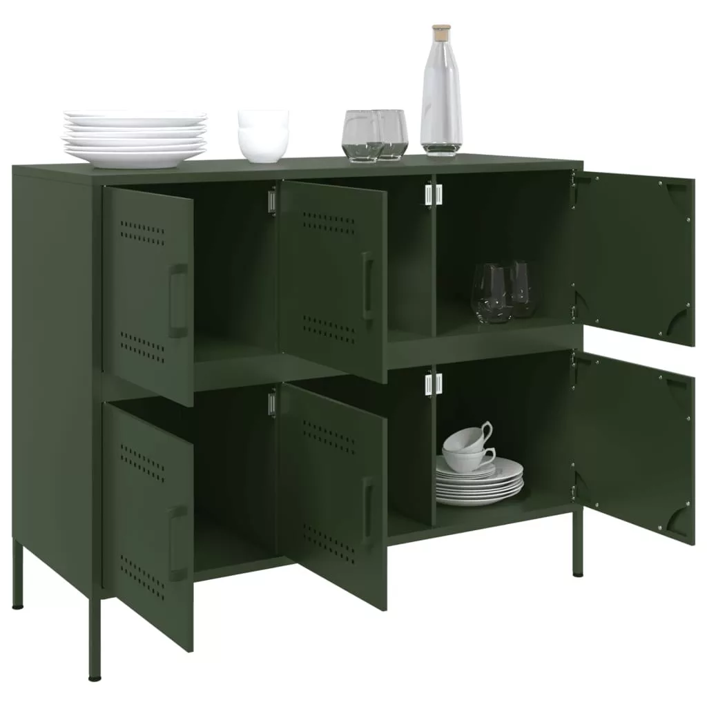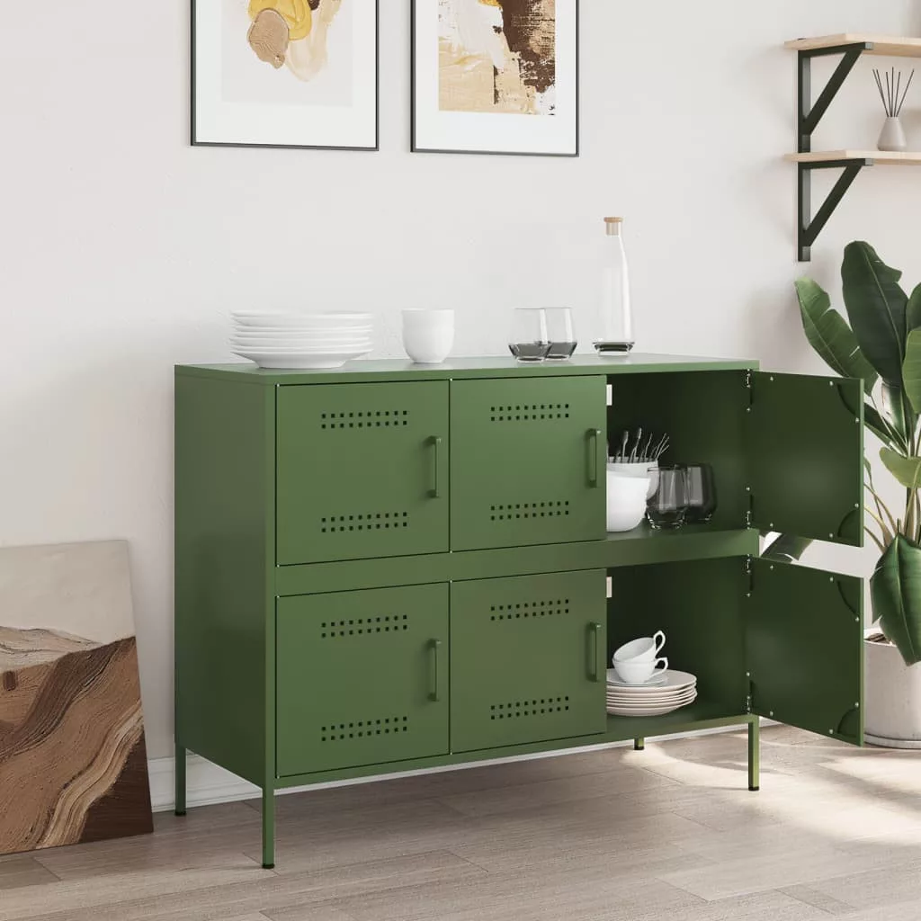olívazöld acél tálalószekrény 100,5 x 39 x 79 cm