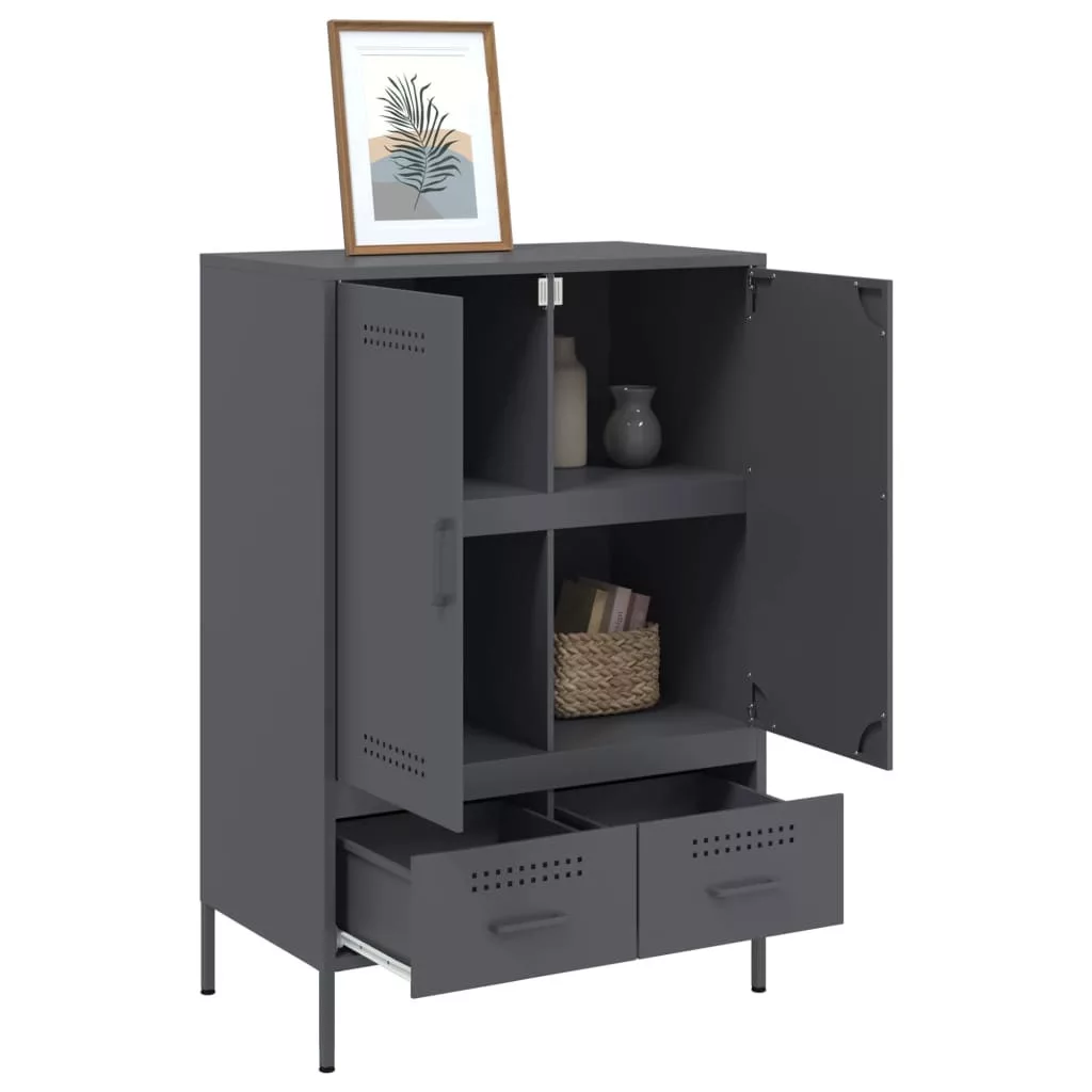 antracitszürke acél magasszekrény 68 x 39 x 101,5 cm