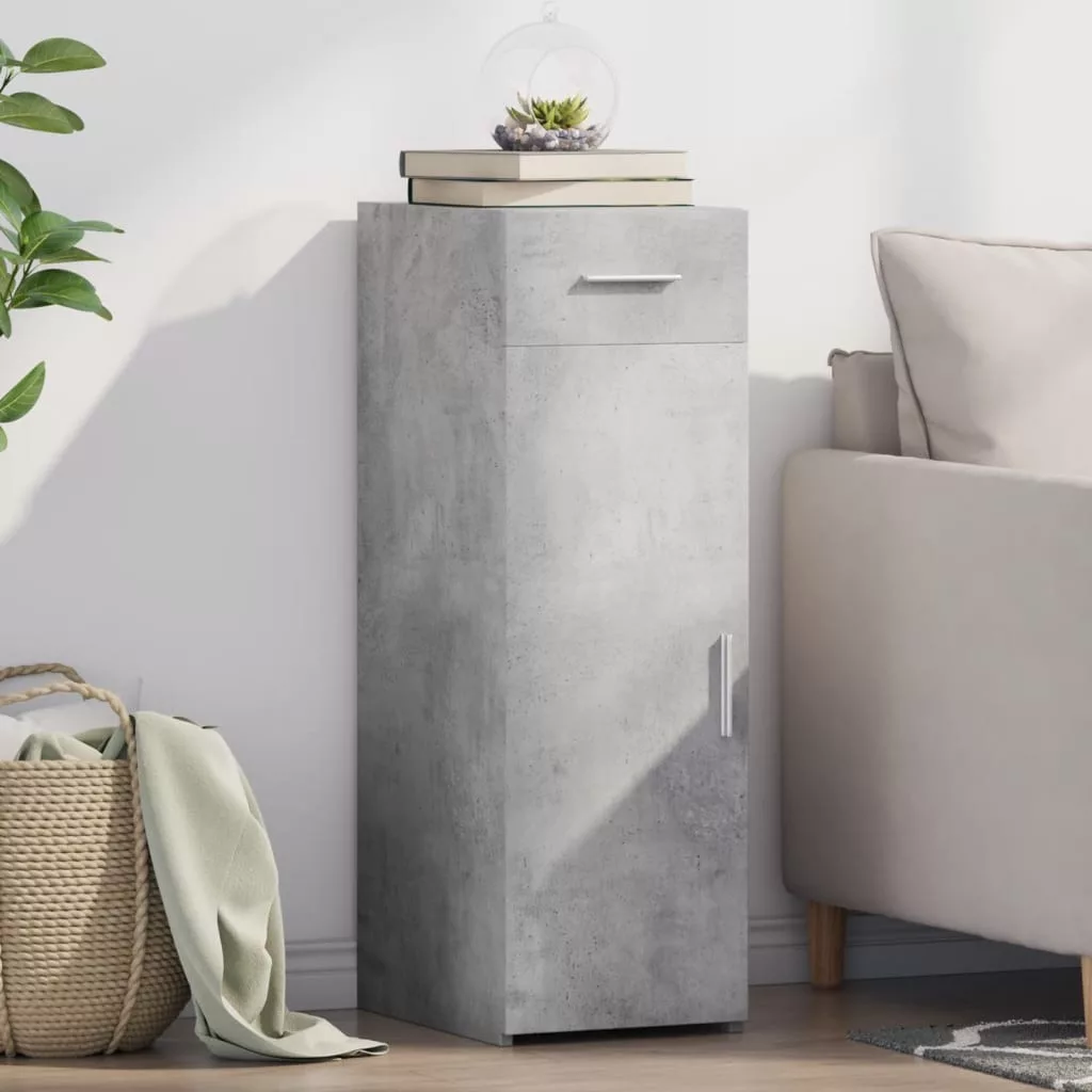 betonszürke szerelt fa tálalószekrény 30 x 42,5 x 93 cm