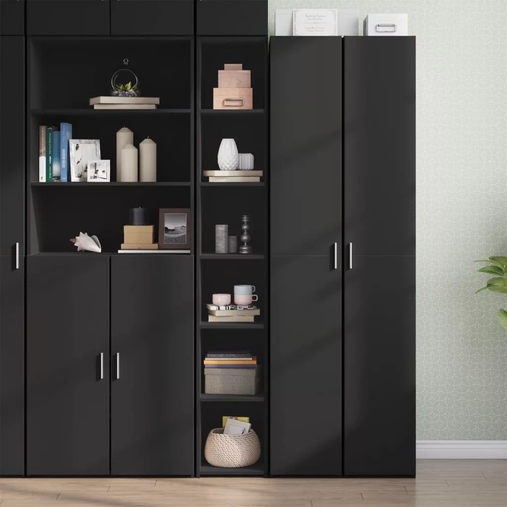 fekete szerelt fa magasszekrény 30 x 41 x 185 cm