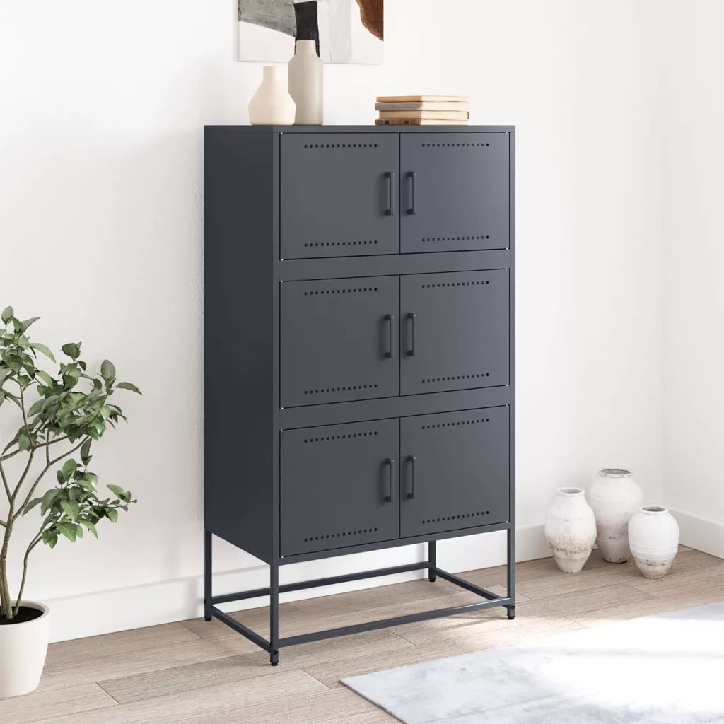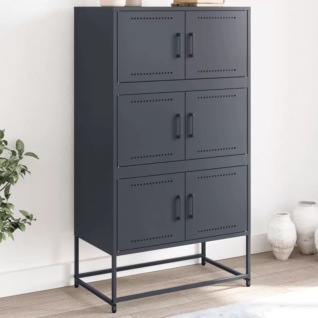 antracitszürke acél tálalószekrény 68,5x38,5x123,5 cm