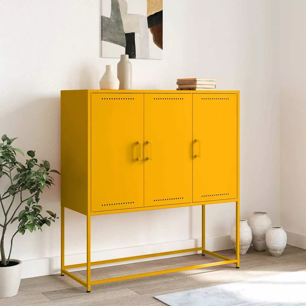 mustársárga acél magasszekrény 100,5 x 39 x 107 cm