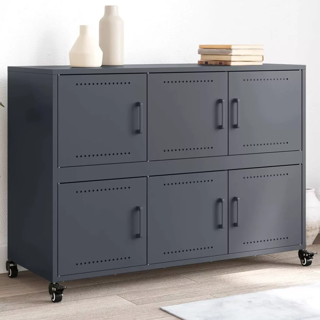 antracitszürke acél tálalószekrény 100,5 x 39 x 72 cm
