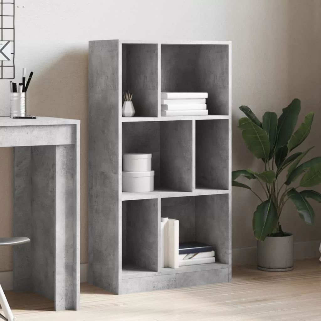 betonszürke szerelt fa könyvespolc 57 x 28,5 x 107,5 cm