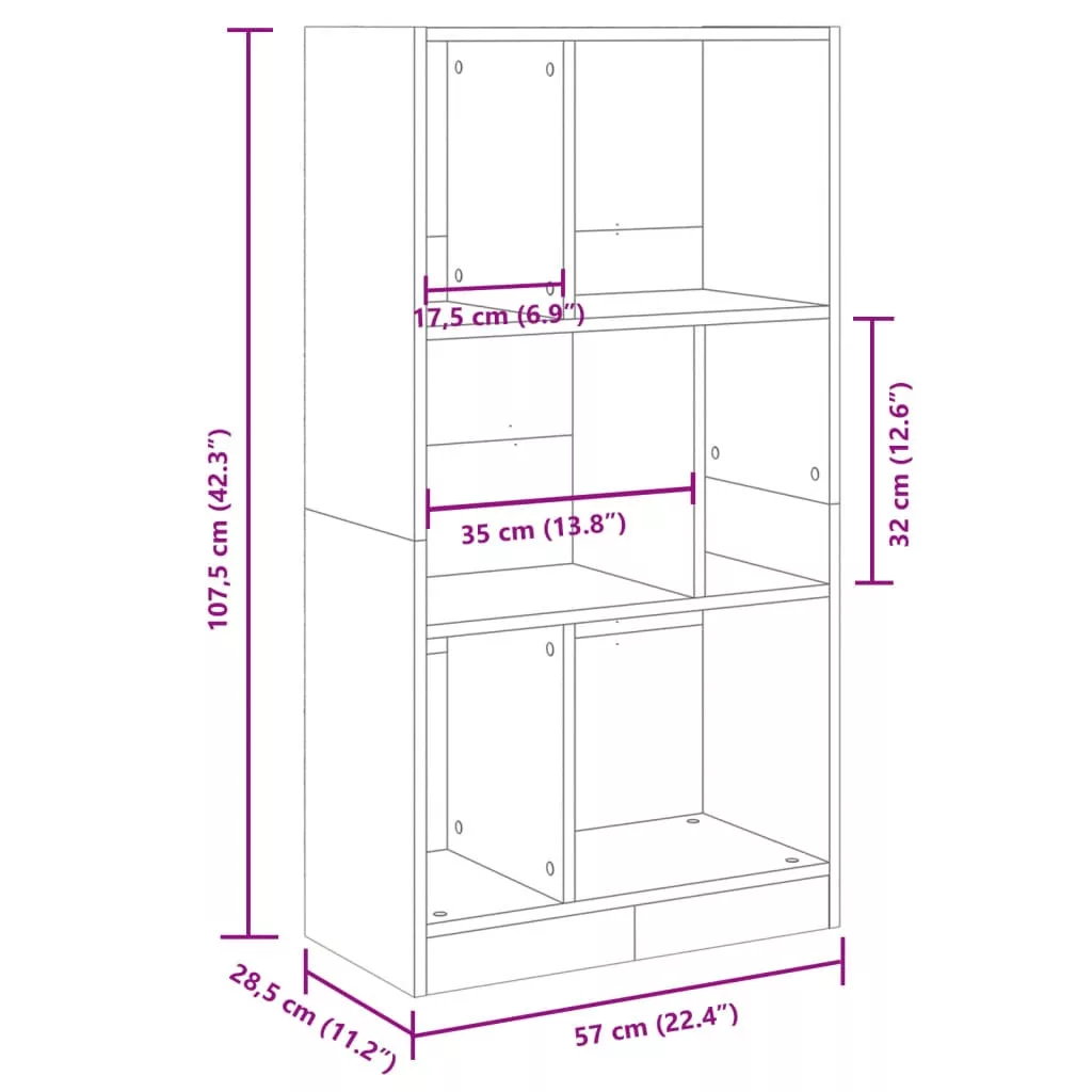 Hozzon létre extra tárolóhelyet otthonában vagy irodájában ezzel a könyvespolccal! Minden kincse számára talál tökéletes helyet. Hosszú élettartamú anyag: A szerelt fa kivételes minőségű, sima felületű, szilárd, stabil, és ellenáll a nedvességnek.Tágas tárolóhely: Ez a könyvszekrény 6 rekesszel rendelkezik, így bőséges helyet kínál gyűjtemények, könyvek, csecsebecsék, fényképek, és egyéb dísztárgyak kézközelben történő rendezett tárolásához.Könnyen karbantartható: Sima felületének köszönhetően a szekrény nedves ruhával könnyen tisztítható, és kevesebb gondozást igényel.Rekeszekre osztott kialakítás: A szinteken lévő rekeszekre osztott kialakítás lehetővé teszi a tárgyak tetszés szerint való rendezését. Figyelem:A felborulás elkerülése érdekében ezt a terméket a mellékelt fali rögzítőeszközzel kell használni.