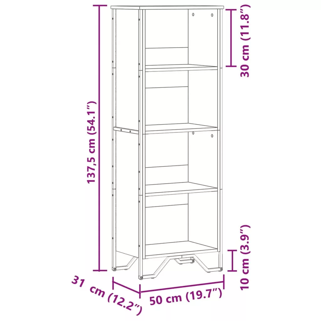 Ez a könyvespolc ideális megoldást kínál könyvei rendezett tárolásához, miközben modern bájt varázsol enteriőrjébe. Hosszú élettartamú anyag: A szerelt fa kivételes minőségű, sima felületű, szilárd, stabil, és ellenáll a nedvességnek.Bőséges tárolóhely: Ez a könyvespolc 4 nyitott rekesszel rendelkezik holmijai kézközelben történő rendezett tárolásához.Stabil és robusztus felső rész: A tárolószekrény teteje tökéletes dísztárgyak, képkeretek és cserepes növények elhelyezésére.Fémlábak: A fémlábak modern és nyugodt stílust kölcsönöznek a belső térnek, miközben stabilitást biztosítanak. Figyelem:A felborulás elkerülése érdekében ezt a terméket a mellékelt fali rögzítőeszközzel kell használni.