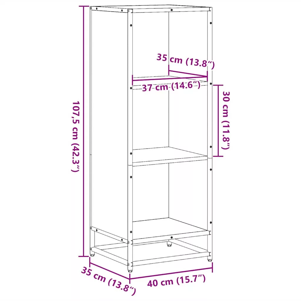 sonoma színű szerelt fa könyvszekrény 40x35x107,5 cm