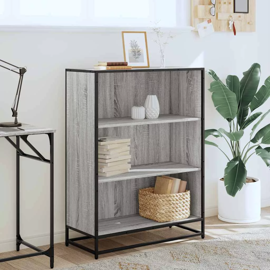 szürke sonoma színű szerelt fa könyvszekrény 80,5x35x107,5 cm