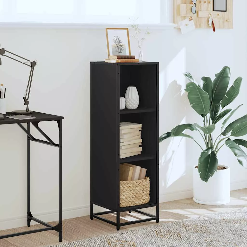 fekete szerelt fa könyvszekrény 33,5x33x107,5 cm
