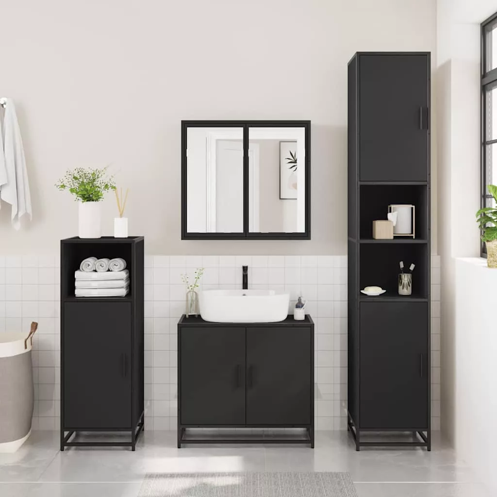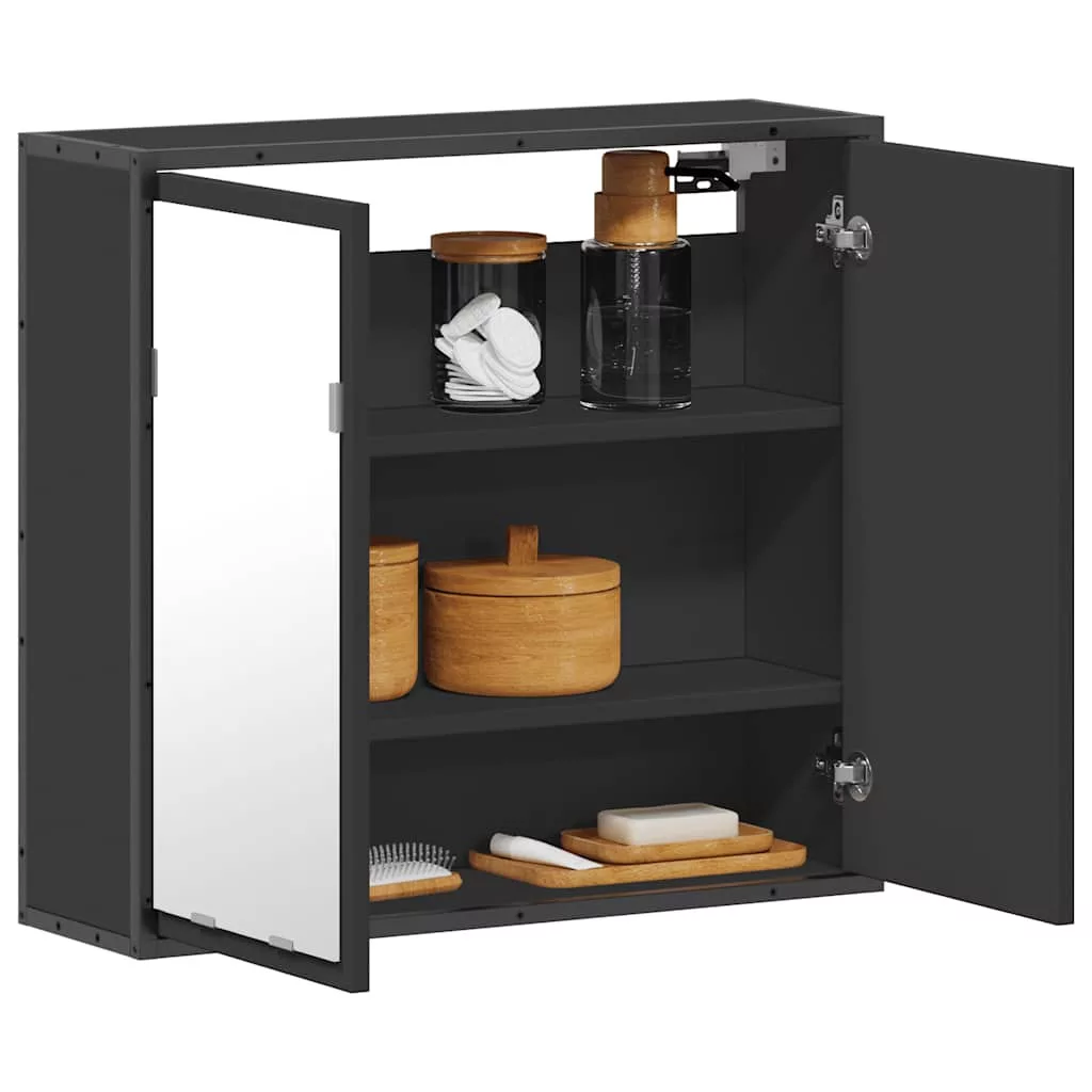 fekete szerelt fa fürdőszobai tükör 65x20x60 cm