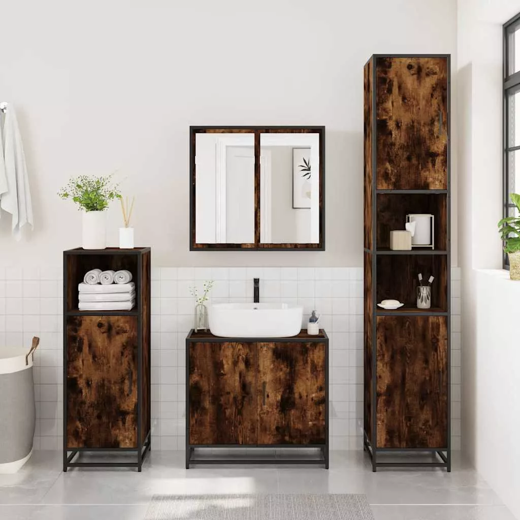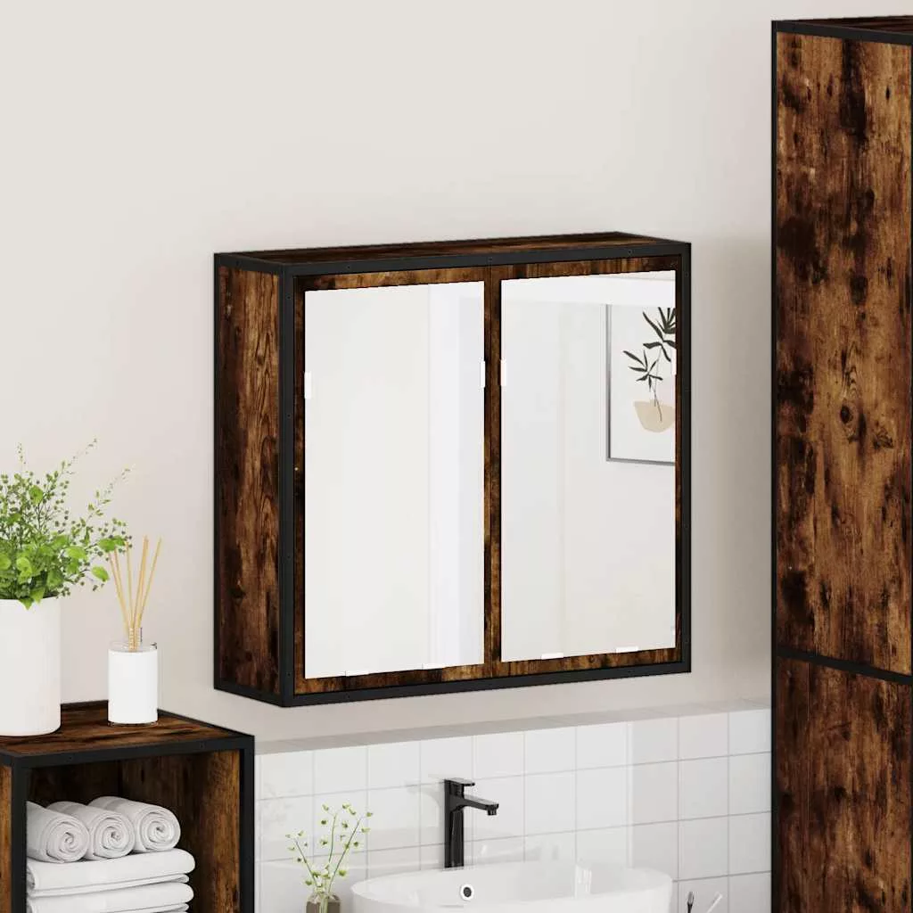 füstölt tölgy szerelt fa tükrös fürdőszobaszekrény 65x20x60 cm