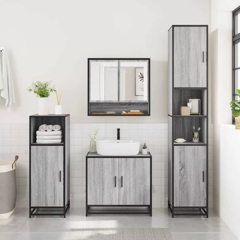 szürke sonoma színű szerelt fa tükrös szekrény 65x20x60 cm