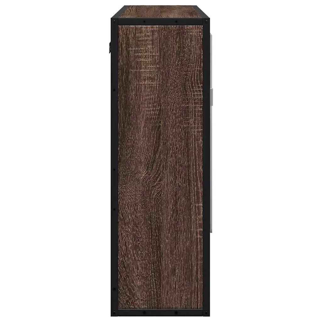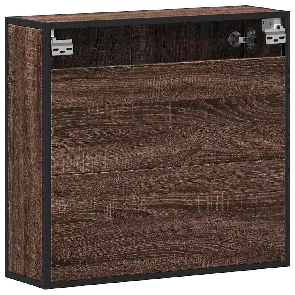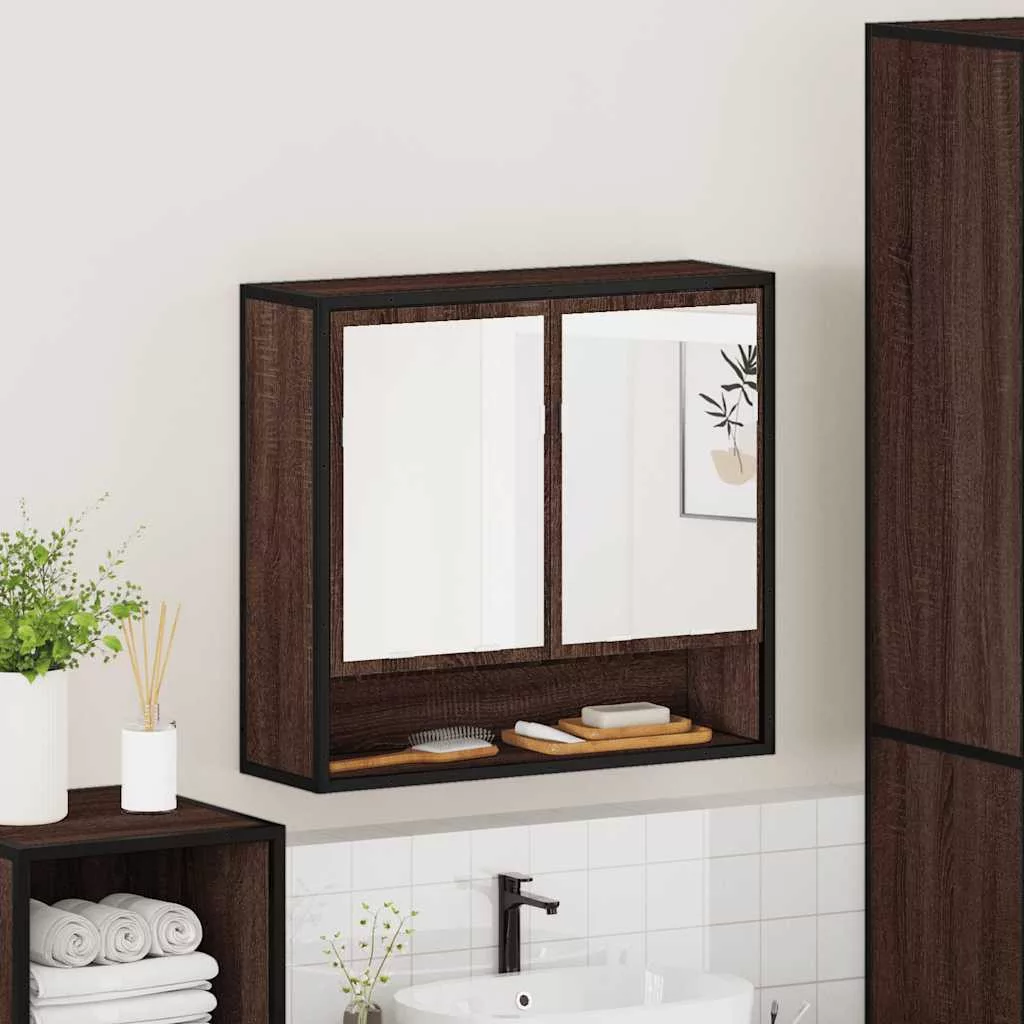 barna tölgy szerelt fa tükrös fürdőszobaszekrény 65x20x60 cm