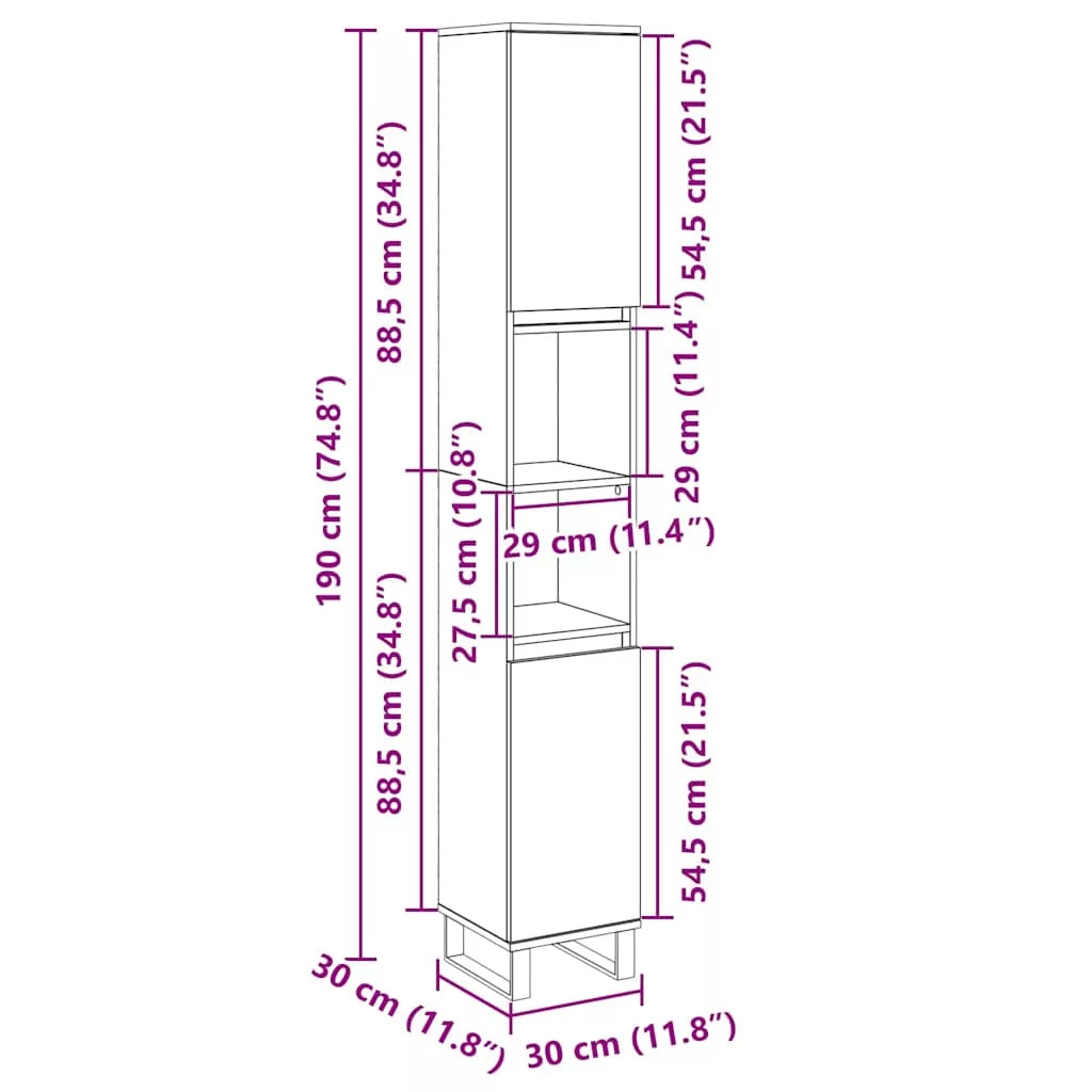 sonoma tölgy színű szerelt fa fürdőszobaszekrény 30x30x190 cm