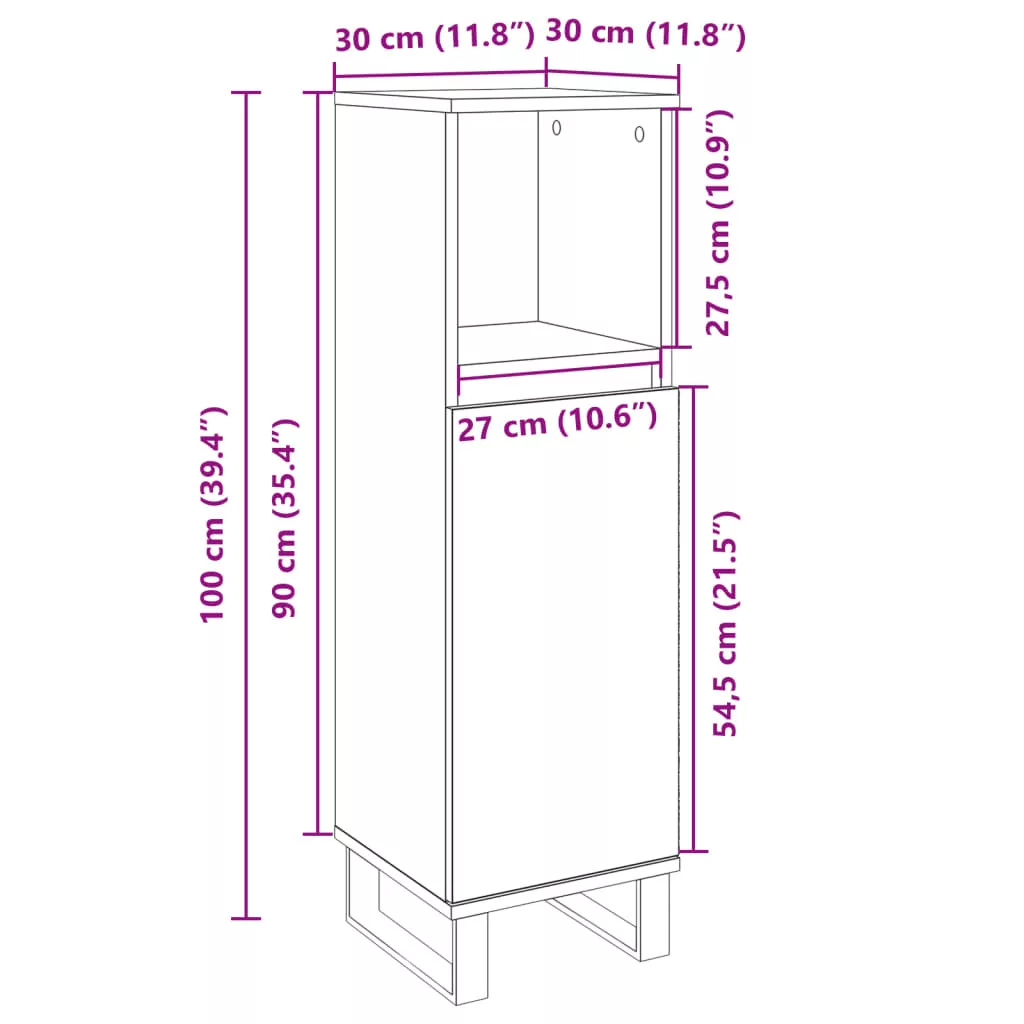 sonoma tölgy színű szerelt fa fürdőszobaszekrény 30x30x100 cm