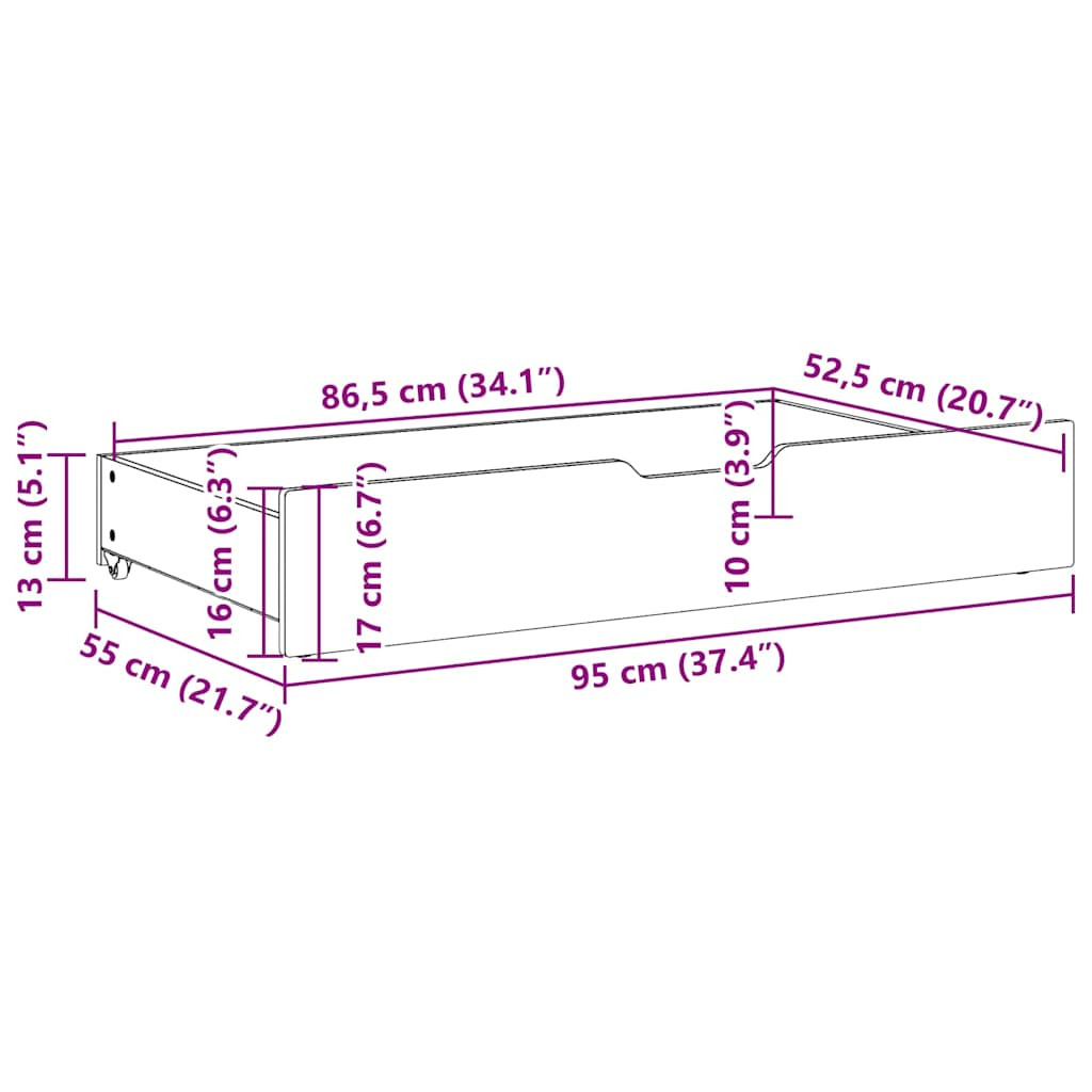2 db fehér tömör fenyőfa ágy alatti fiók 95 x 55 x 17 cm