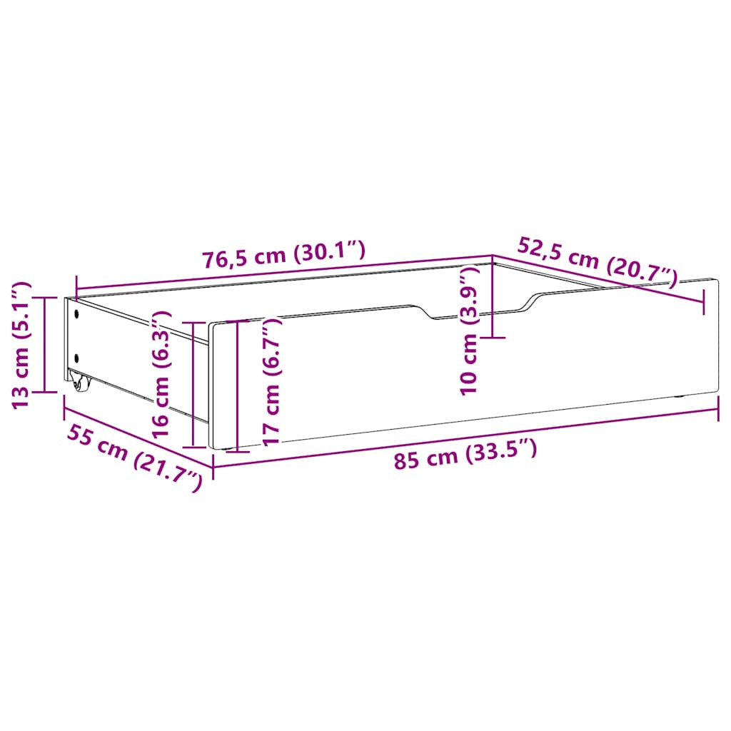 2 db viaszbarna tömör fenyőfa ágy alatti fiók 85 x 55 x 17 cm
