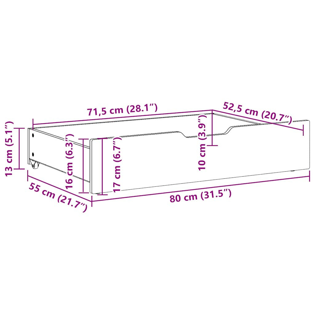 2 db viaszbarna tömör fenyőfa ágy alatti fiók 80 x 55 x 17 cm