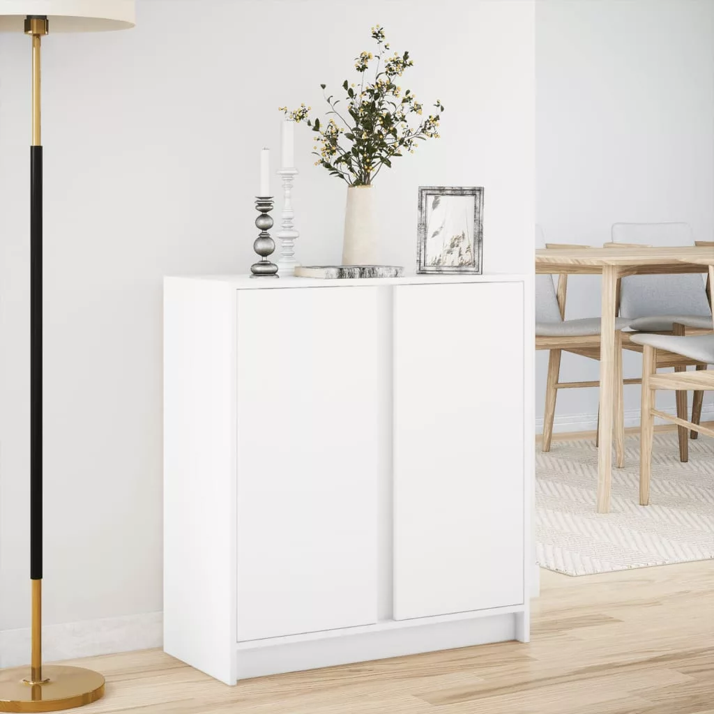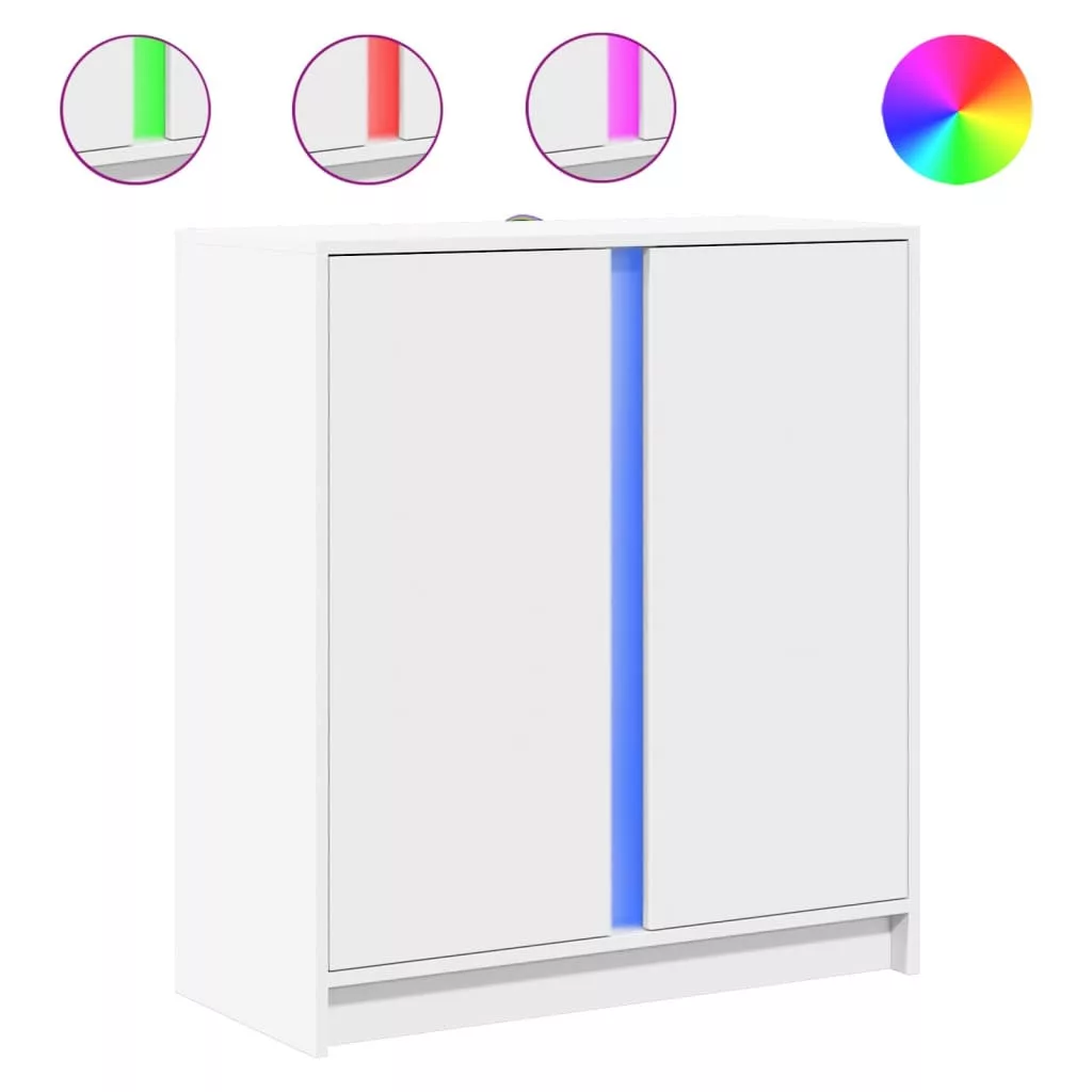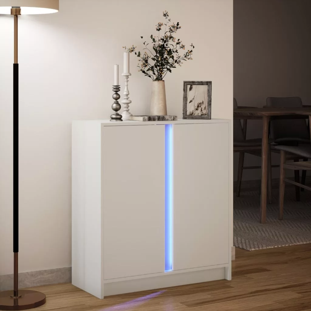 fehér szerelt fa tálalószekrény LED-del 77 x 34 x 85 cm