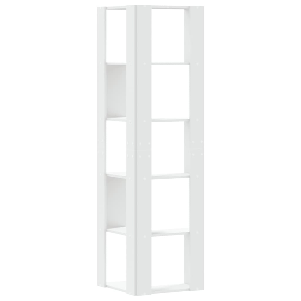 5 szintes fehér szerelt fa sarok könyvespolc 50 x 50 x 179 cm