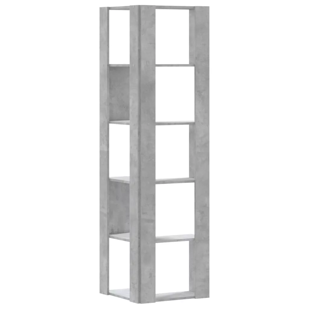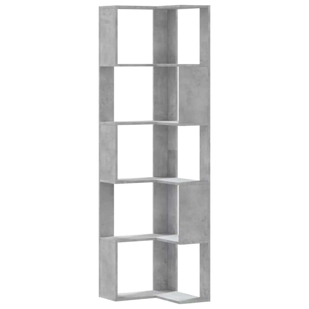 5 szintes betonszürke szerelt fa sarok könyvespolc 50x50x179 cm