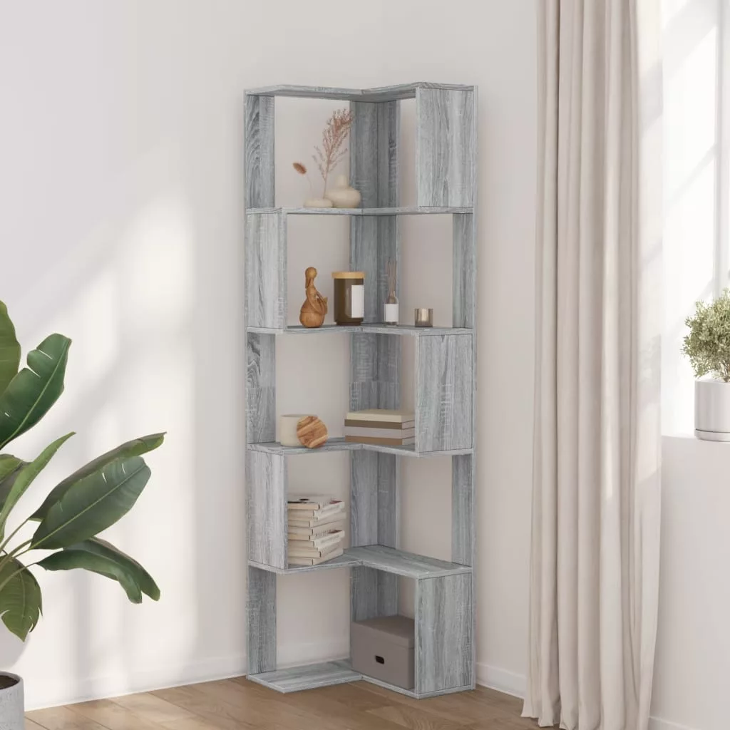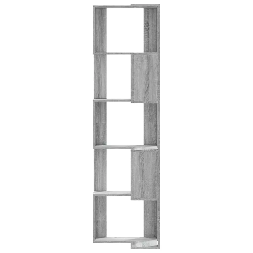 5 szintes szürke szerelt fa sarok könyvespolc 50 x 50 x 179 cm