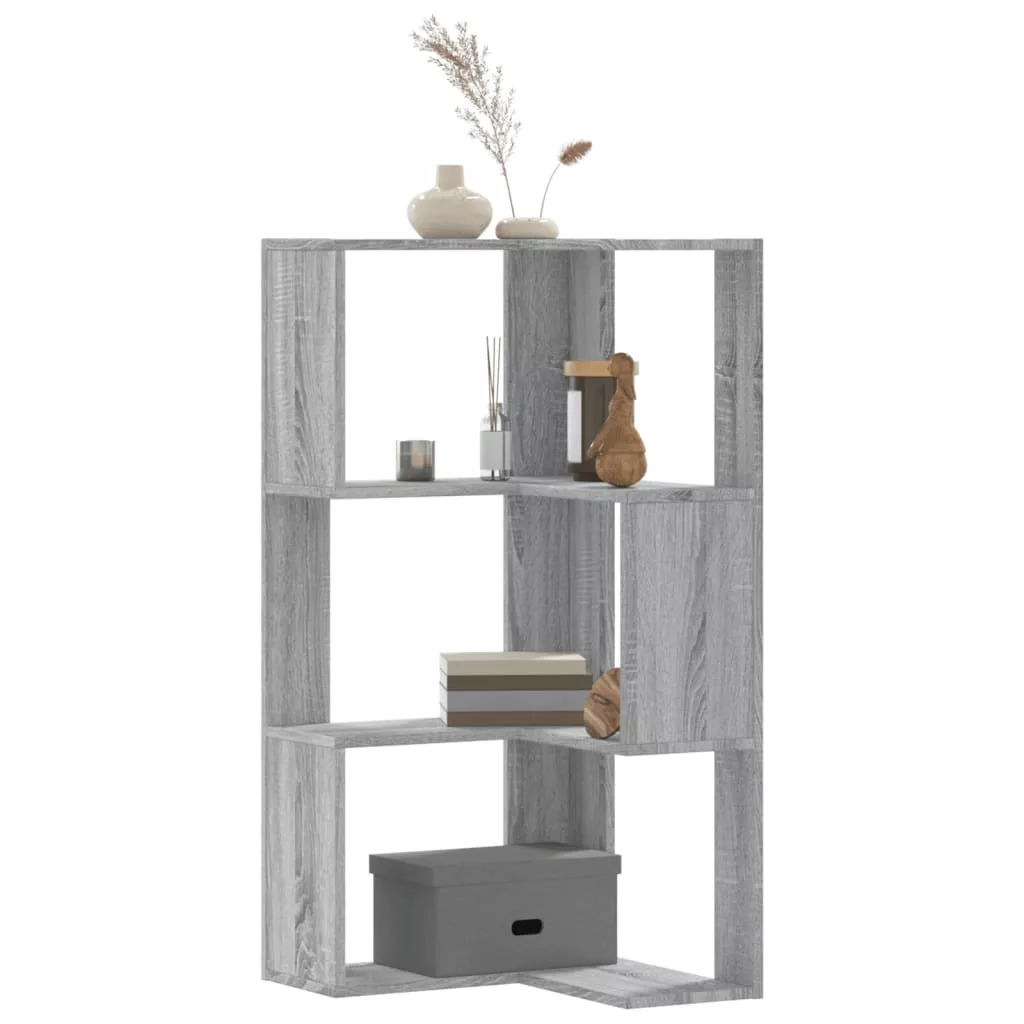 3 szintes szürke szerelt fa sarok könyvespolc 50 x 50 x 102 cm