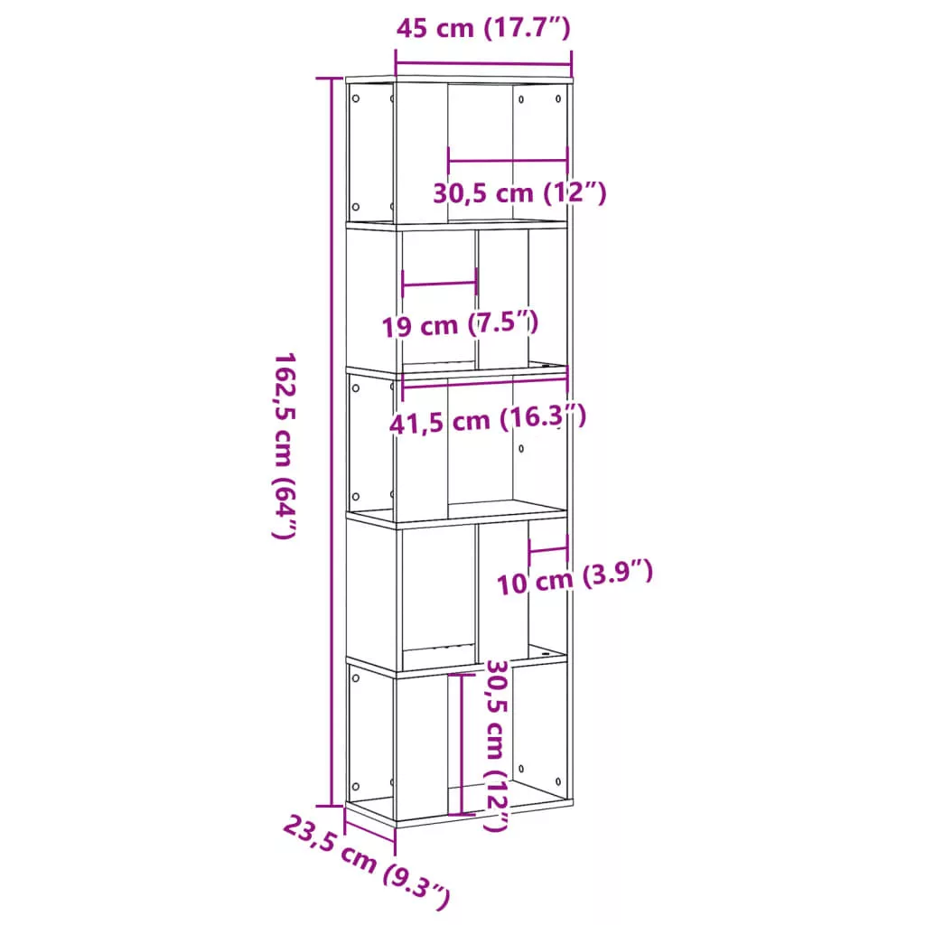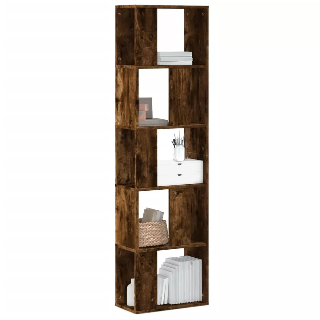 5 szintes füstös tölgy szerelt fa könyvespolc 45x23,5x162,5 cm