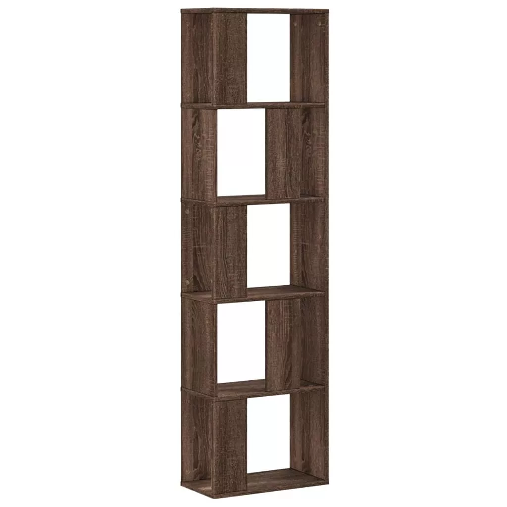 5 szintes barna tölgy szerelt fa könyvespolc 45x23,5x162,5 cm
