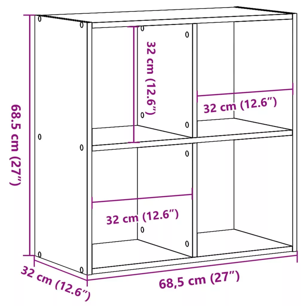 antik fa színű szerelt fa könyvespolc 68,5 x 32 x 68,5 cm