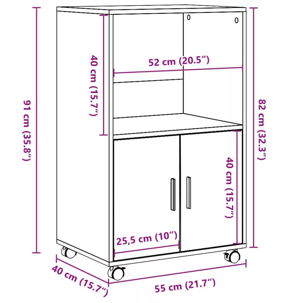 sonoma tölgy színű szerelt fa kerekes szekrény 55 x 40 x 91 cm