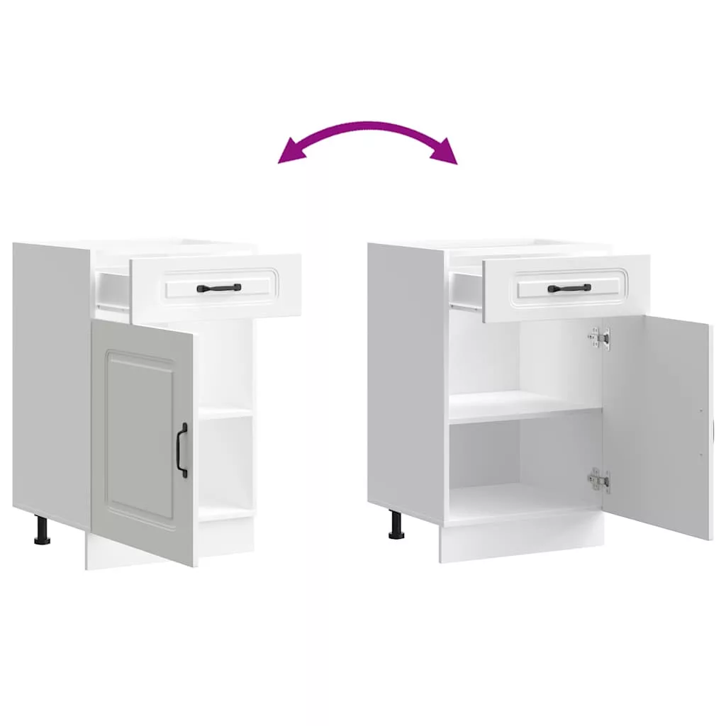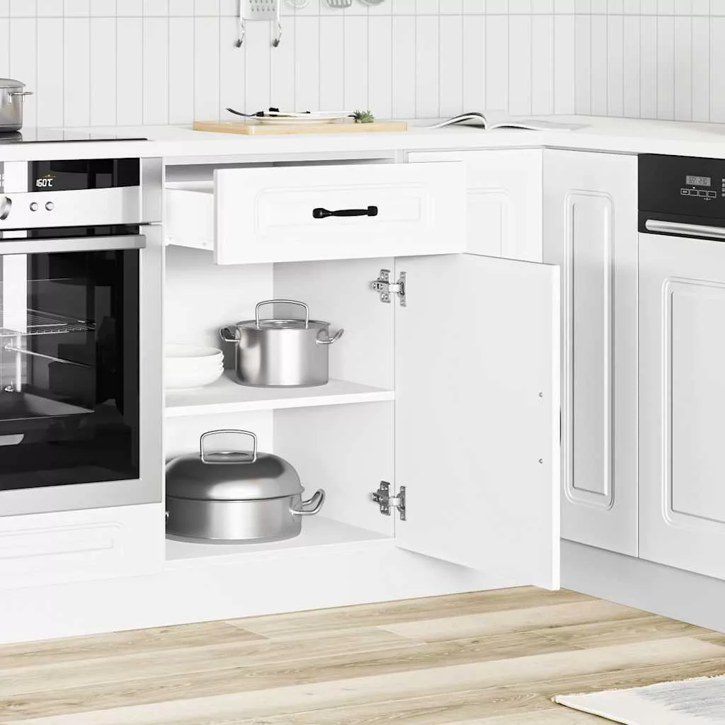 Ez a konyhai alapszekrény optimalizálja a konyhai teret, és bőséges tárolóhelyet biztosít személyes tárgyai számára! Stabil és tartós anyag: A szerelt fa tartós és stabil anyag sima felülettel, amely ellenáll a nedvességnek, a vetemedésnek és a hasadásnak, így megbízható választás különféle célokhoz.Bőséges tárolóhely: A konyhai alapszekrény elegendő helyet kínál a tálak, tányérok, edények és egyéb konyhai eszközök tárolására.Praktikus ajtó: Az ajtó segít fenntartani a tiszta és rendezett teret azáltal, hogy elrejti a konyhai eszközöket és a mögöttük lévő rendetlenséget.Állítható lábak: A szekrény lábai a konyhai elrendezésnek megfelelően állítható magasságúak.Könnyen karbantartható: A sima felületének köszönhetően ez a konyhai alszekrény könnyen tisztítható nedves ruhával, és kevesebb karbantartást igényel. Figyelem:A felborulás elkerülése érdekében ezt a terméket a mellékelt fali rögzítőeszközzel kell használni. Jó tudni:A falon belüli csavar(ok) és dugó(k) nem alaptartozékok. Keressen és használjon a falának megfelelő csavar(oka)t és dugó(ka)t. Ha bizonytalan, kérje szakember tanácsát. Gondosan olvassa el és kövesse a használati utasítás minden lépését.
