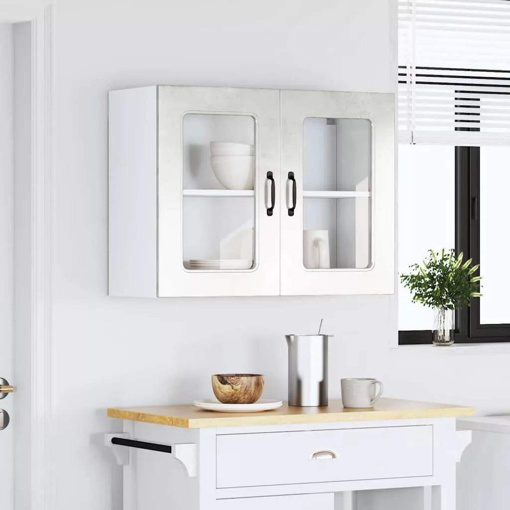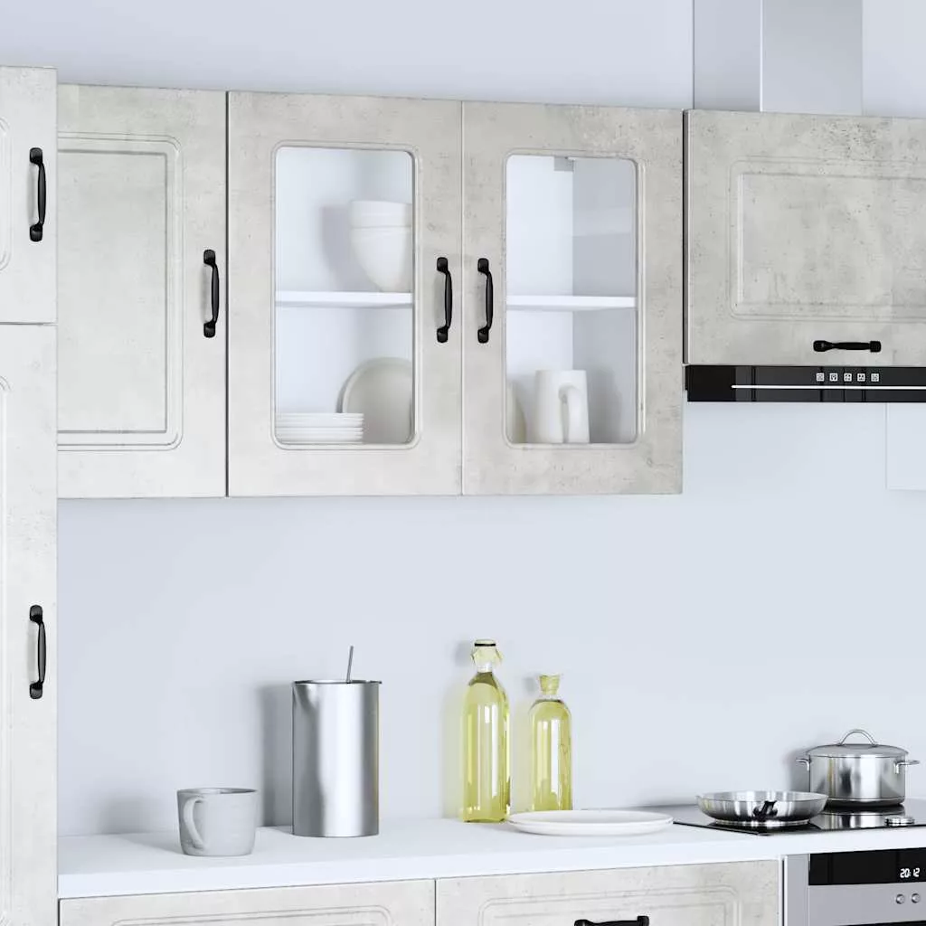 Konyhai fali szekrény üvegajtóval Kalmar beton szürke műfa