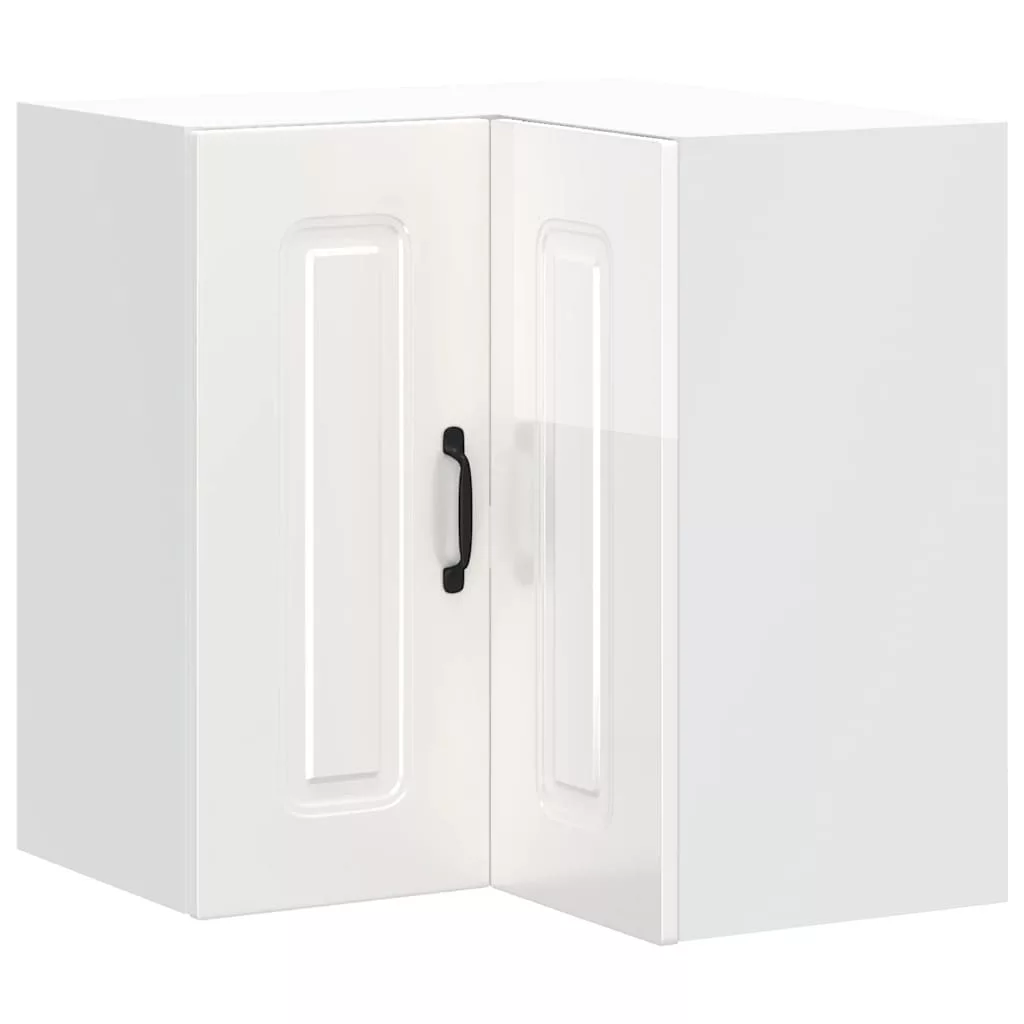 Konyhai fali sarokszekrény Kalmar magasfényű fehér színű műfa