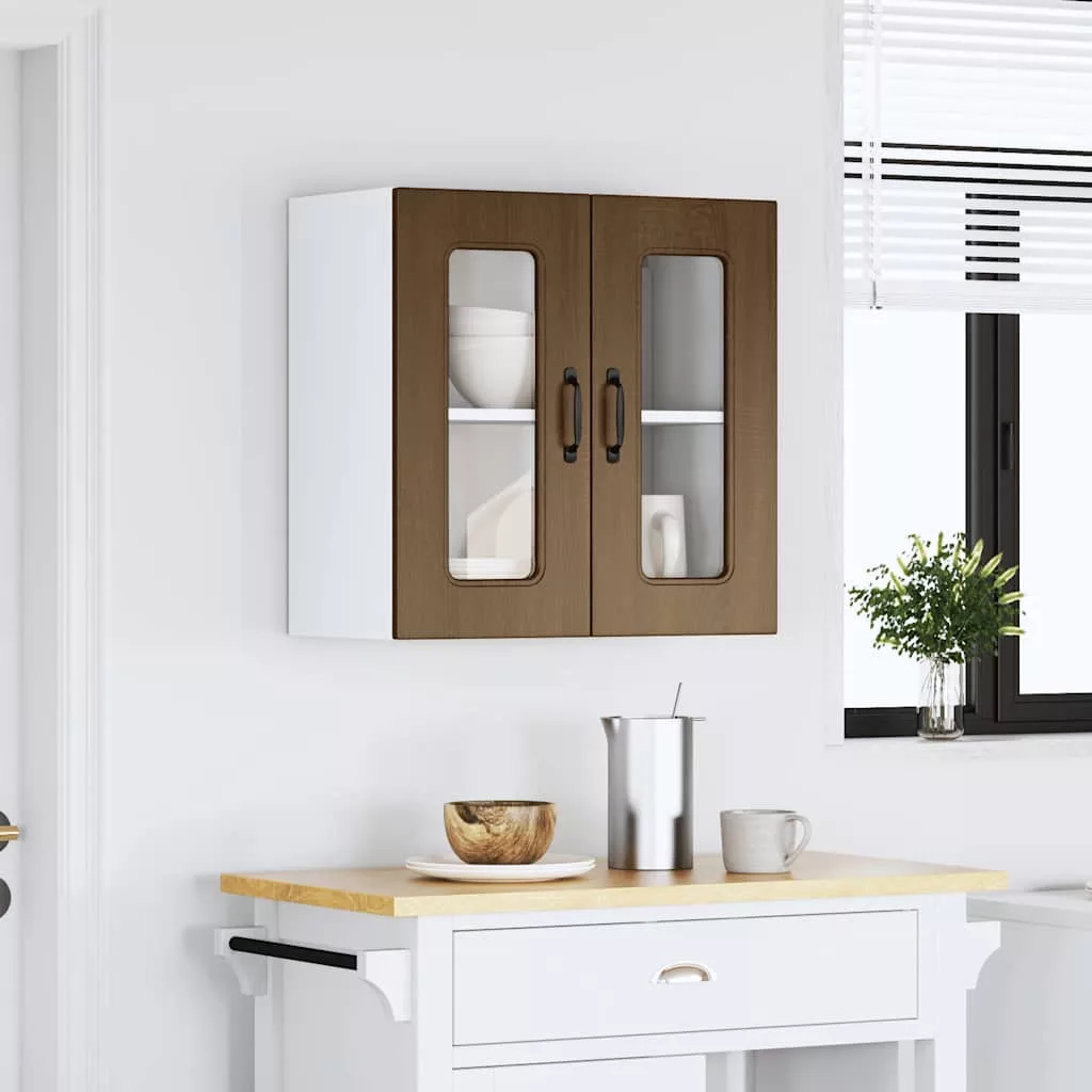 Konyhai fali szekrény üvegajtóval Kalmar barna tölgy színű műfa