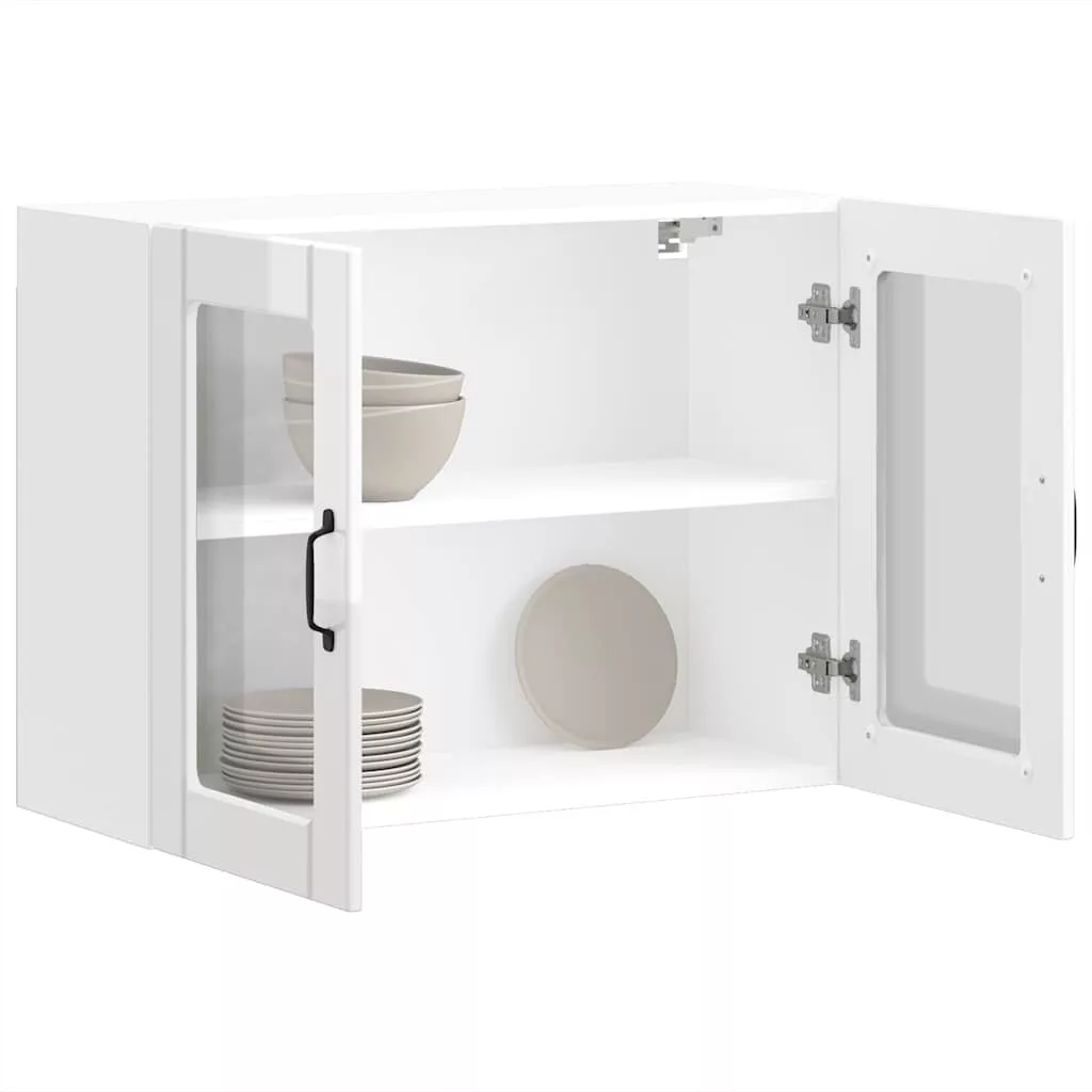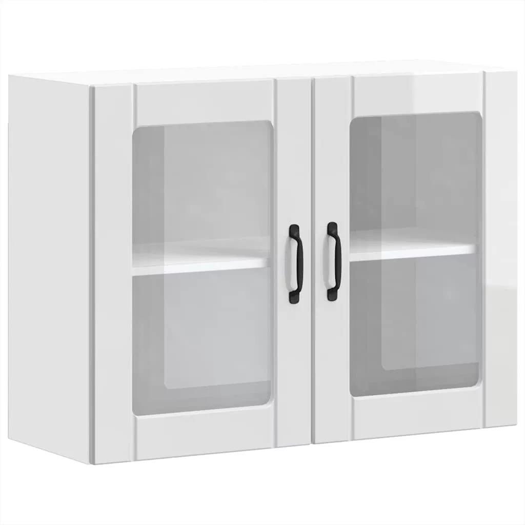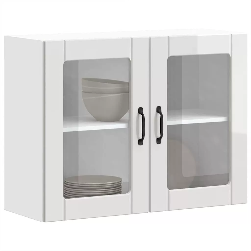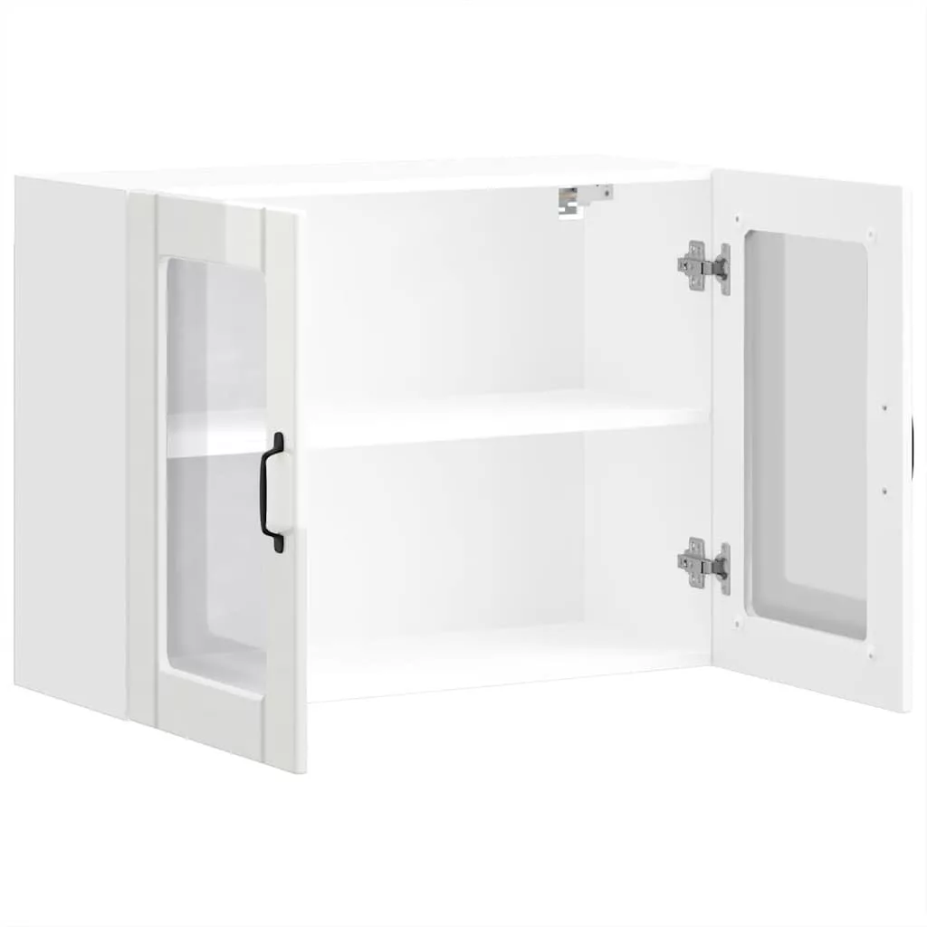 Konyhai fali szekrény üvegajtóval Lucca magasfényű fehér színű